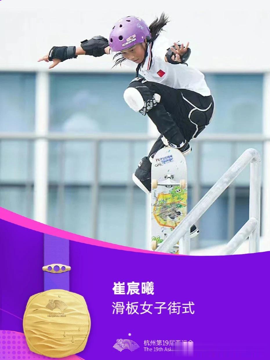 13岁夺得亚运冠军!9月27日,杭州亚运会滑板女子街式决赛上,来自中国山东的13岁女孩儿崔宸曦夺得金牌。