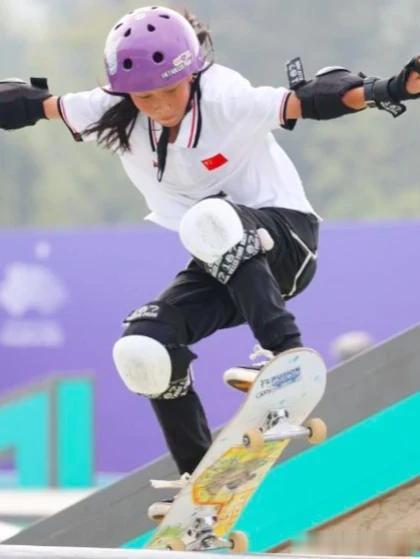 13岁夺得亚运冠军!9月27日,杭州亚运会滑板女子街式决赛上,来自中国山东的13