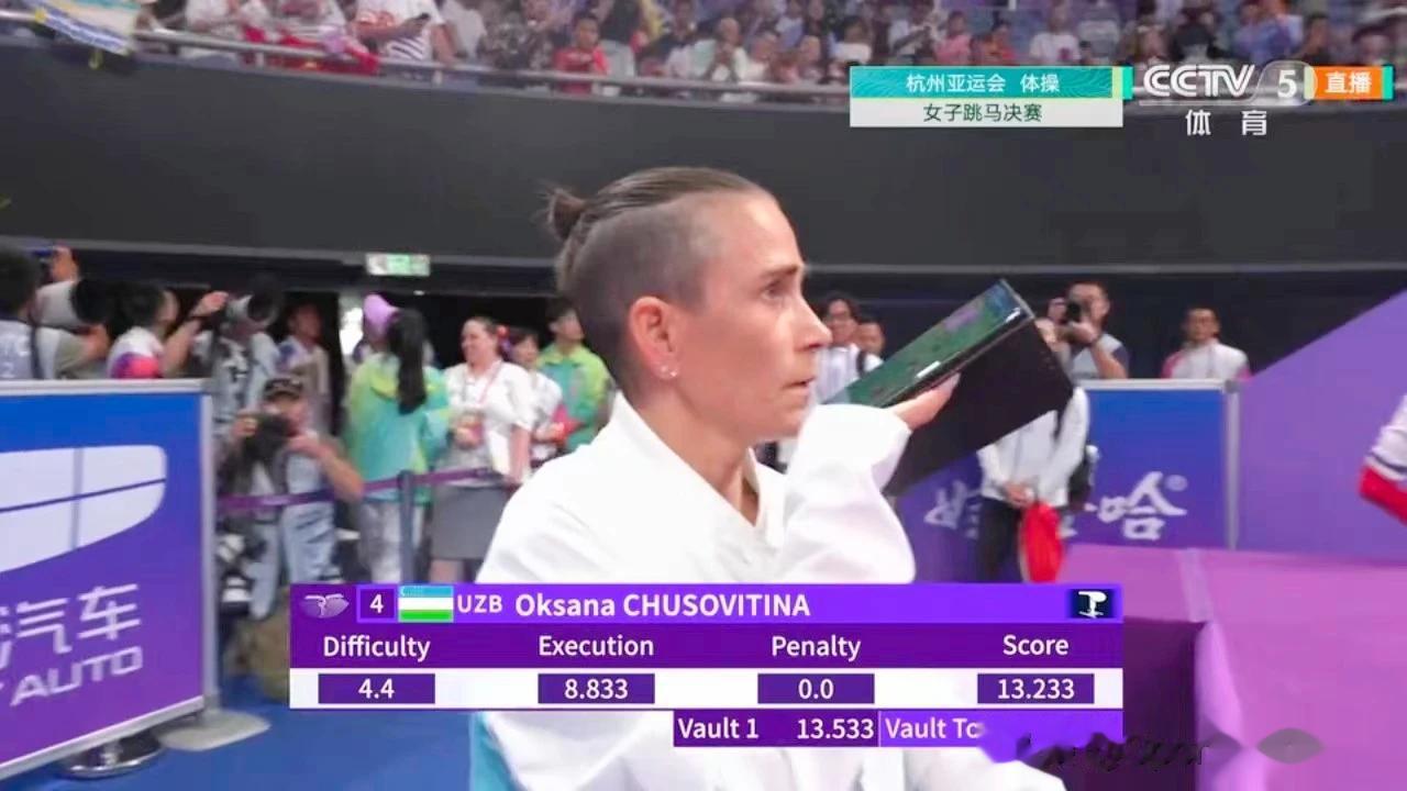 参加过八届夏季奥运会,30年前就曾夺得世界冠军,现已年满48岁的乌兹别克斯坦体操选手丘索维金娜夺得杭州亚运会体操女子跳马第四名。