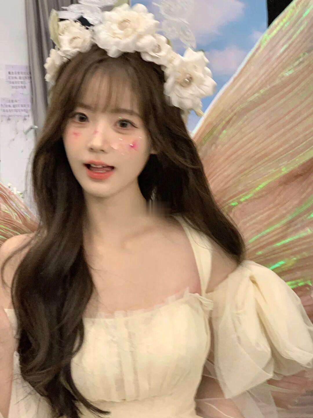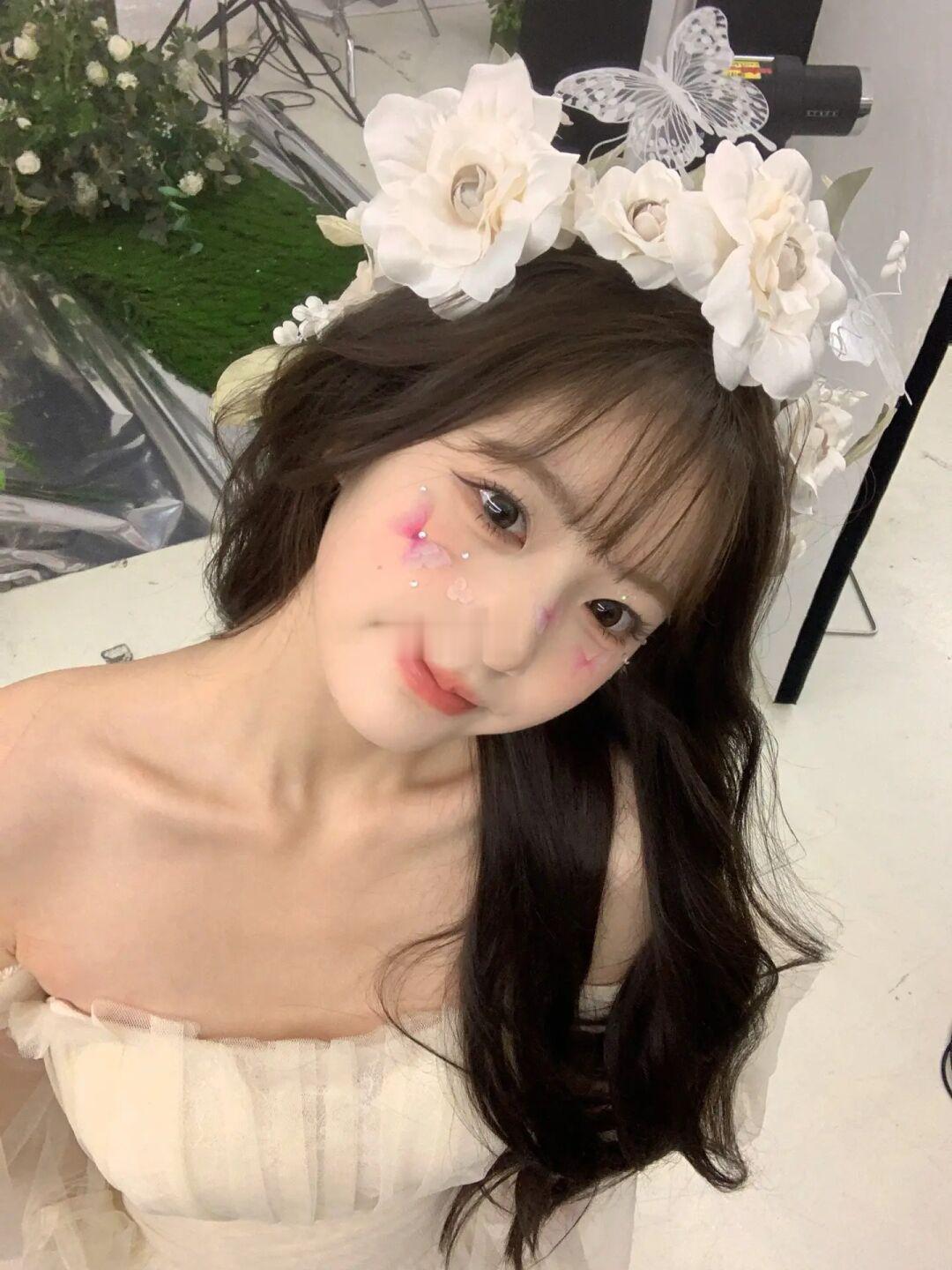 脸上花瓣和蝴蝶点缀 戴上花冠 真的好花仙子!!