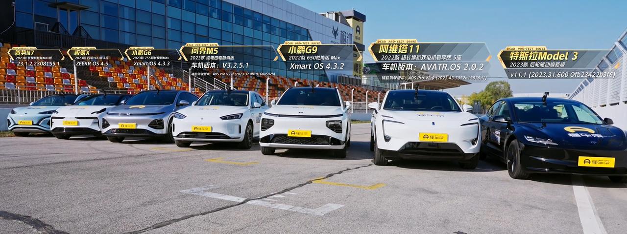 测试车选了7辆,分别为:特斯拉model3、阿维塔11、腾势N7、问界M5、小鹏G6、极氪X、小鹏G9;