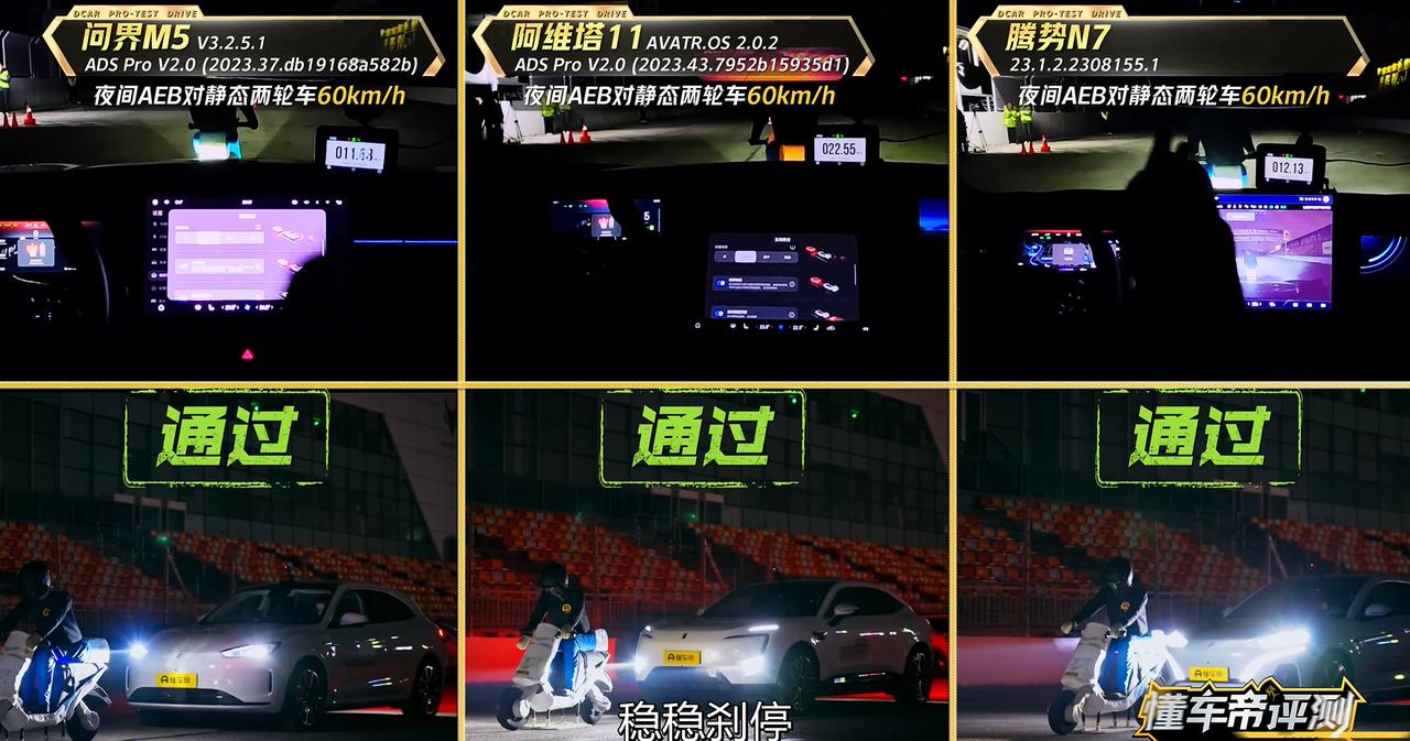 问界M5、阿维塔11、腾势N7通过60km/h刹停测试;