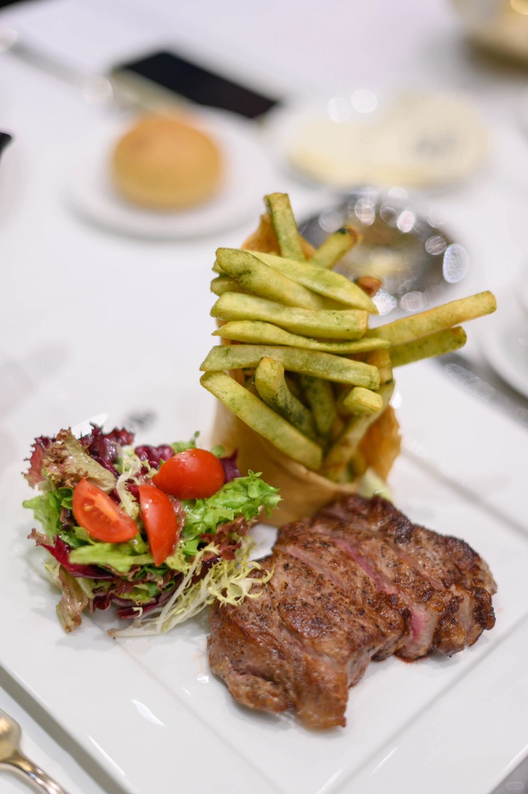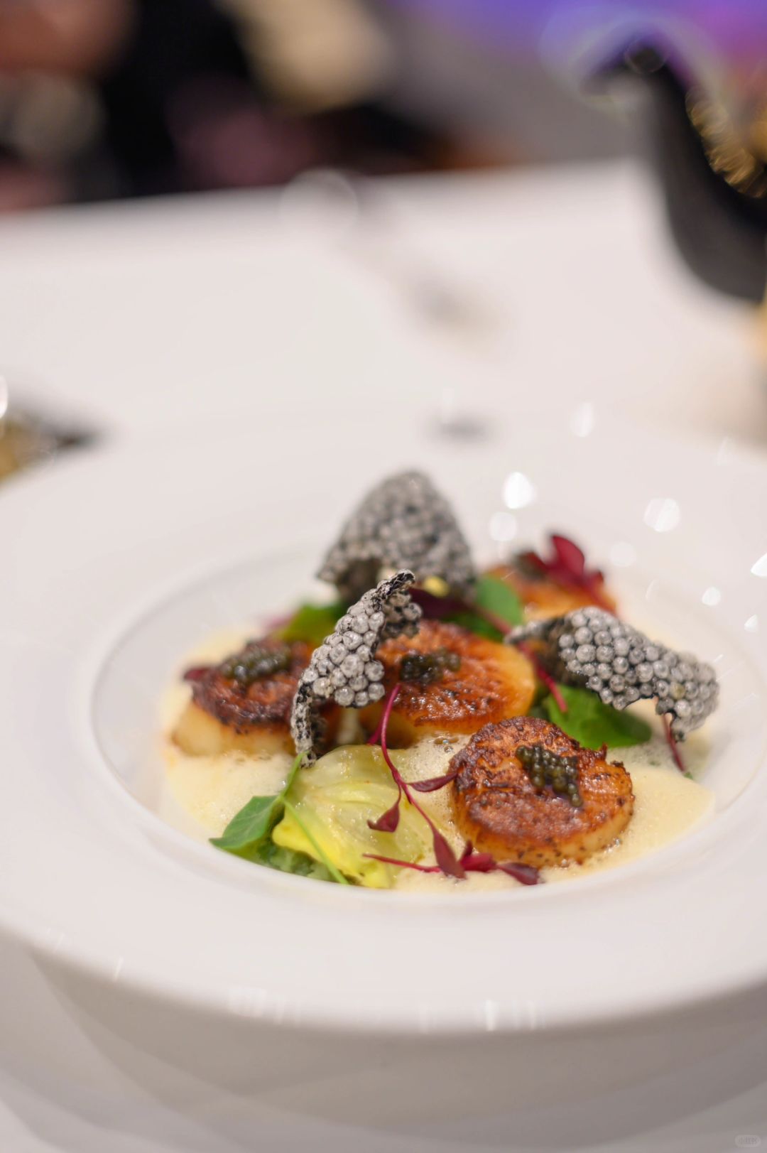 特威茶是我比较喜欢的品牌,来自新加坡。气候、土壤条件,有机种植及制作工艺造就了它的高品质。和露露来到特威茶环贸店吃法餐,餐厅里的菜品、马卡龙、蛋糕和黄油内都有茶叶,口感特别又很好吃。 我选了圣诞季单人套餐、内有香煎扇贝配抹茶茶香土豆泥和藏红花调味的茴香,生蚝乳沫和烟熏鲱鱼籽,搭配了铁观音。露露选择了牛排,也很喜欢。这里的茶都是每人一壶,很多选择。露露还很喜欢他家的茶香马卡龙,微甜不腻带着淡淡的茶香~