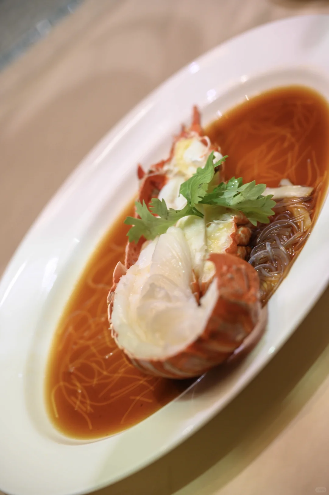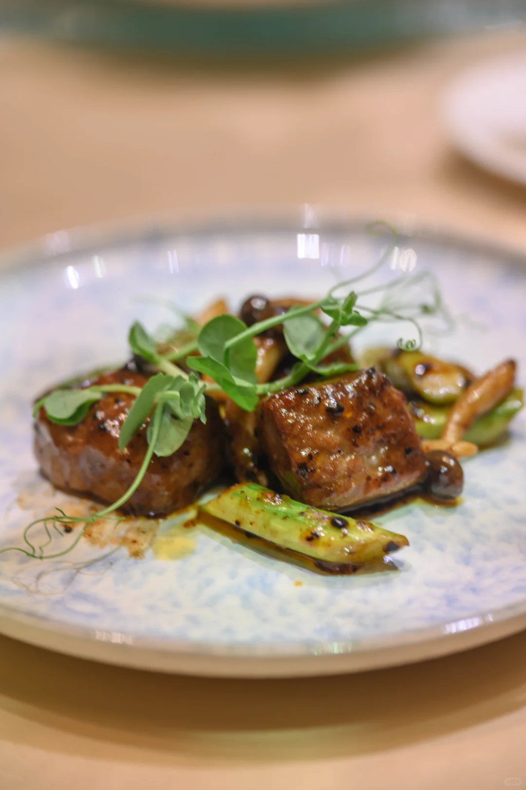 这家的川菜,不吃辣的我也能享用,餐厅特意为我做了少辣。蟹黄鹅肝汤,浓浓的汤底,不一样的蟹黄做法。辣豆豉香煎宫崎和牛粒,饱含酱汁的牛肉粒入口即化。柚子蒸开边龙虾吃法比较特别,汤汁带有一点酸味和柚子的清香。麻婆豆腐佐北海道米饭,小辣但可以接受,配米饭还是不错的。