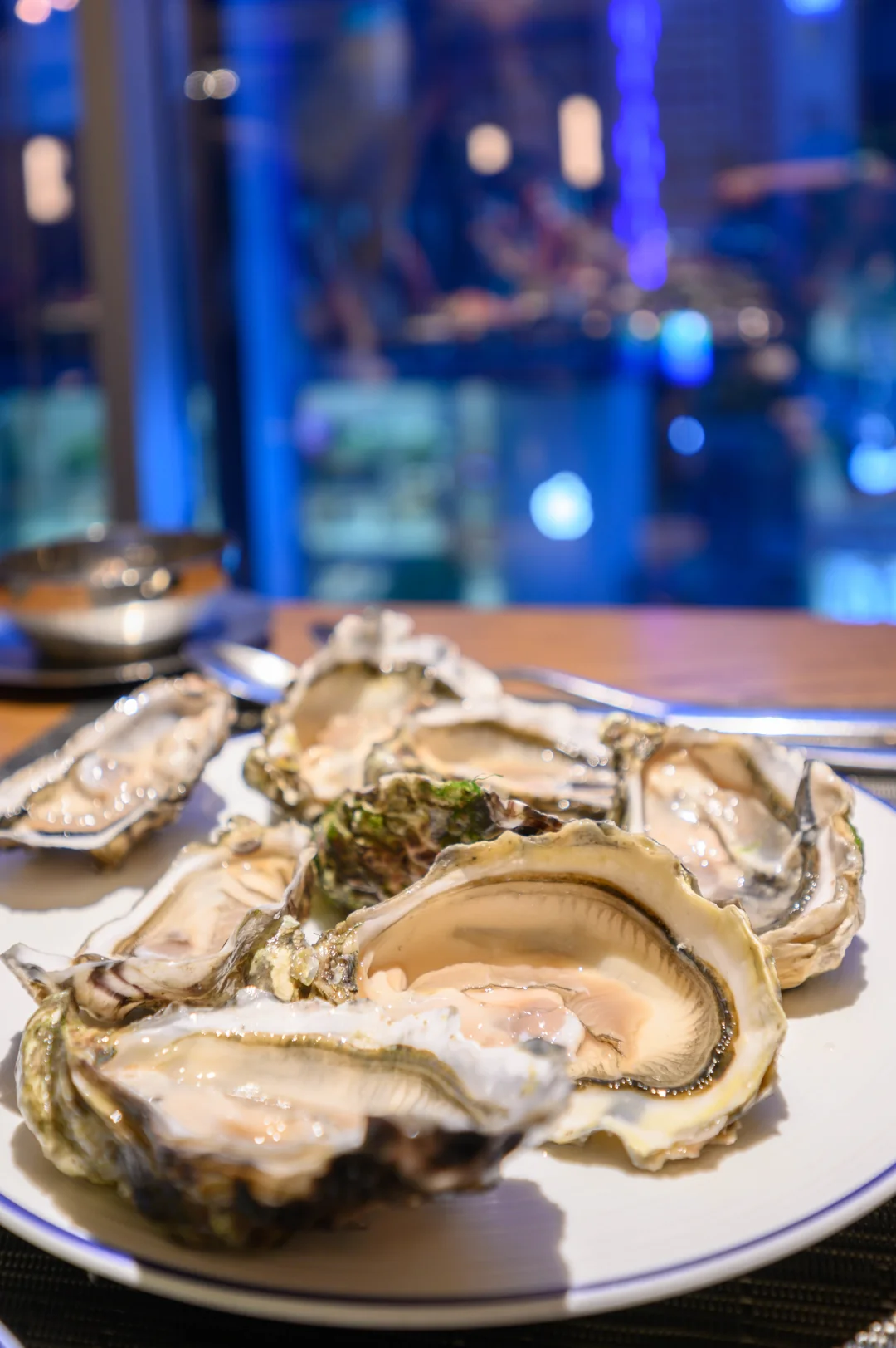晚餐就在Estate全日自助餐厅吃得自助餐,餐品特别丰富。波龙无限量供应,还有刺身、各种热菜、冷菜,点心等。生蚝、牛排、黑豆豆腐炖鲍鱼、黑松露烤鸭可以用桌上的小木牌放进餐品区的桶内,有服务员端上桌,吃完了再去放小木牌,避免了浪费。