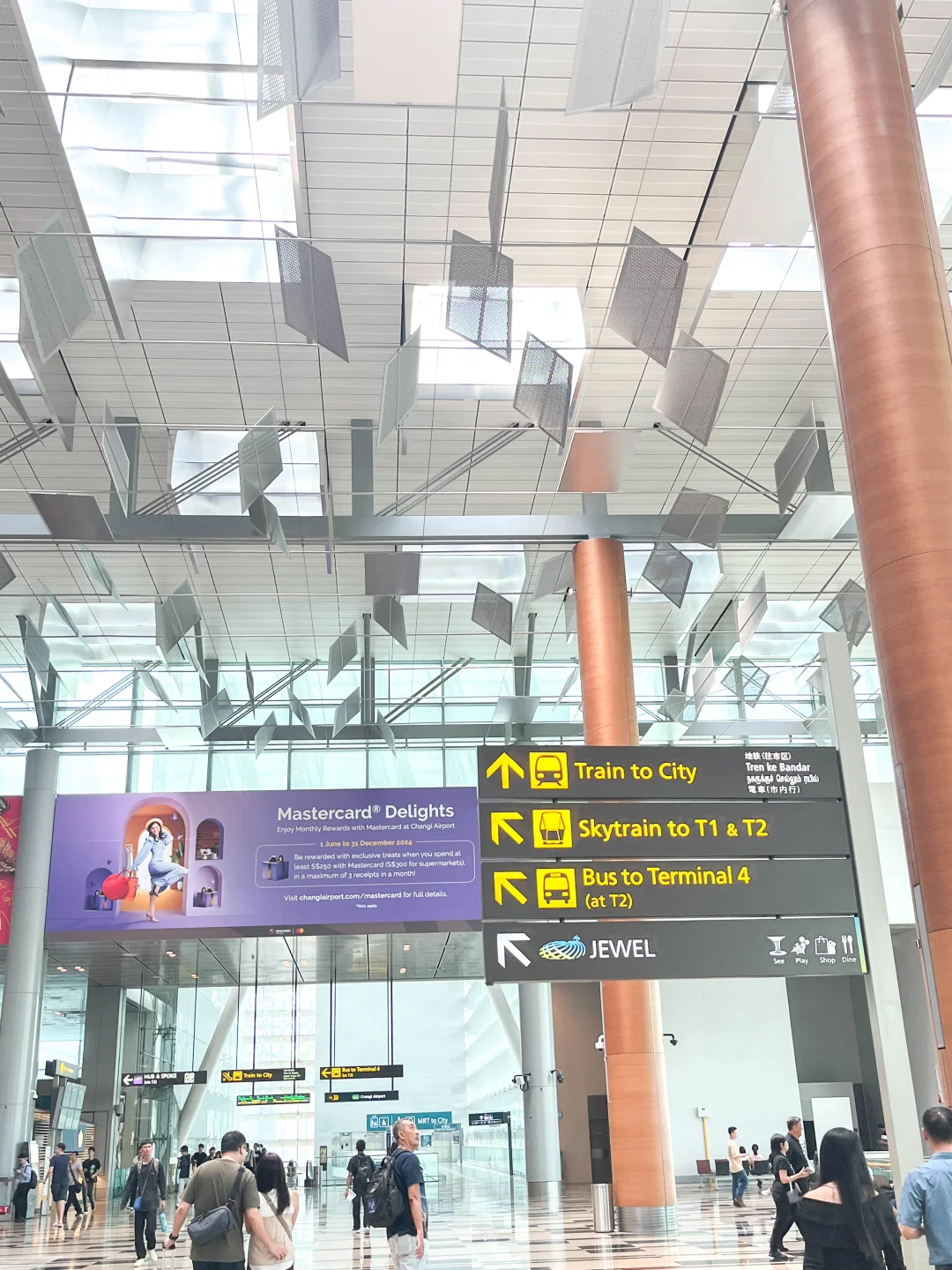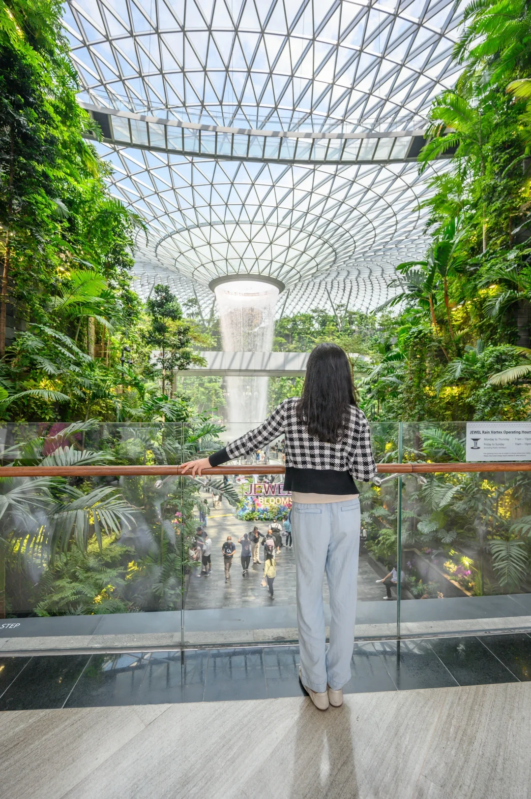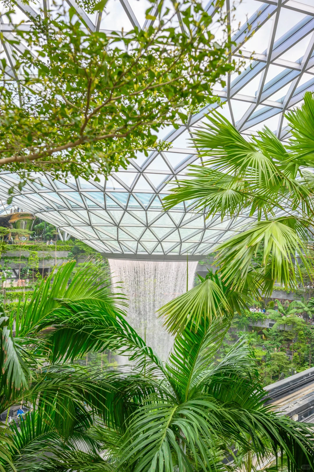 其实瀑布在T1航站楼旁边的星耀樟宜商场里面,进入商场就能看到。