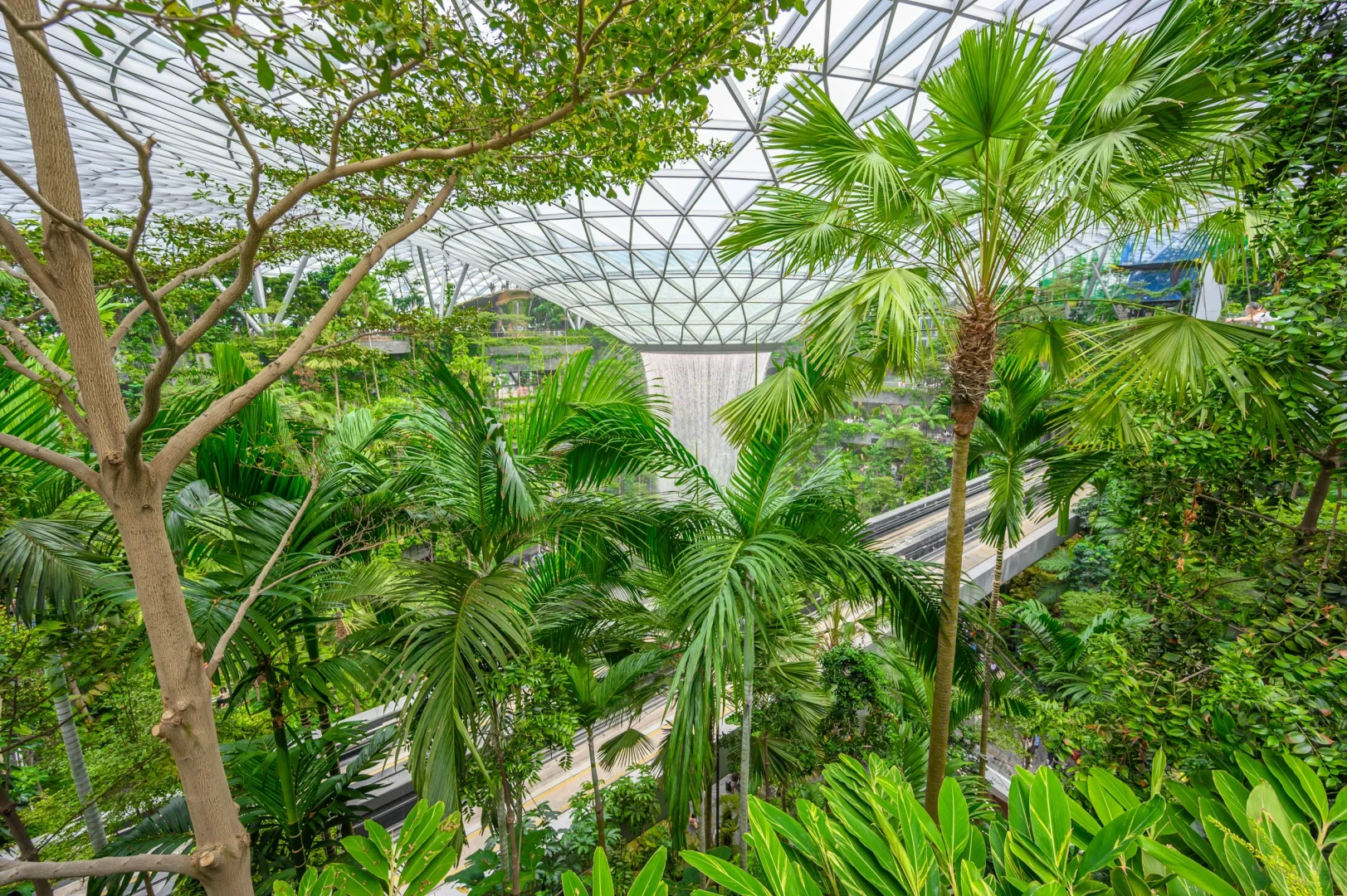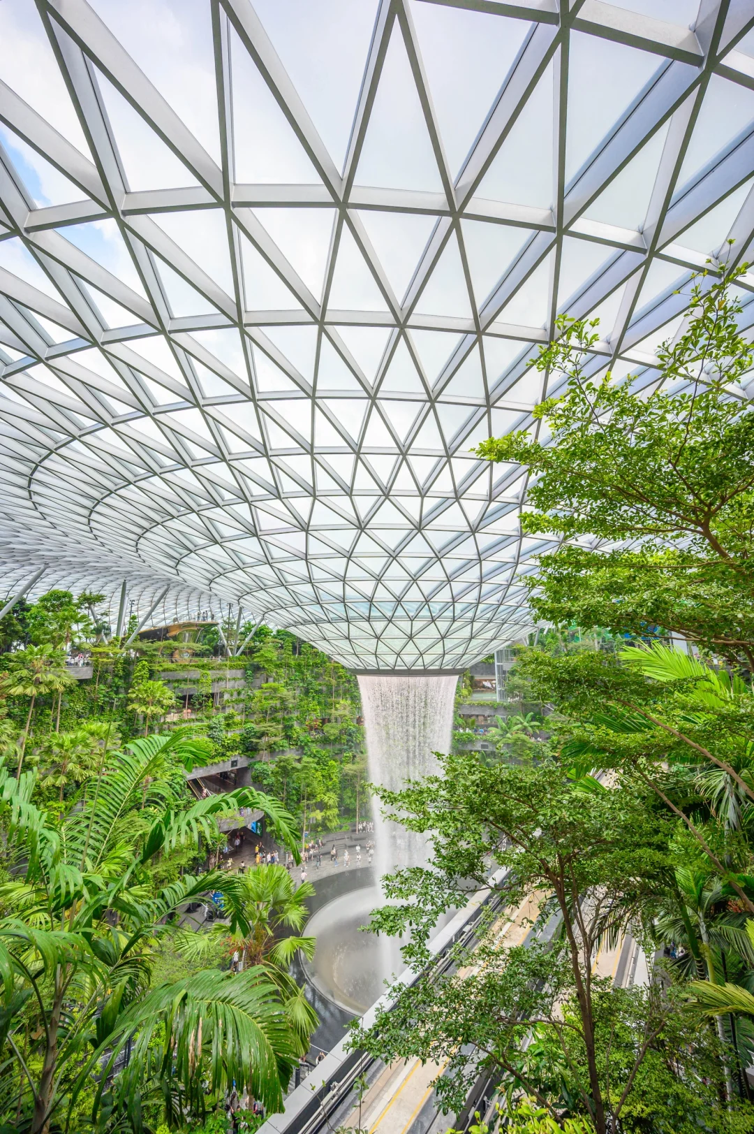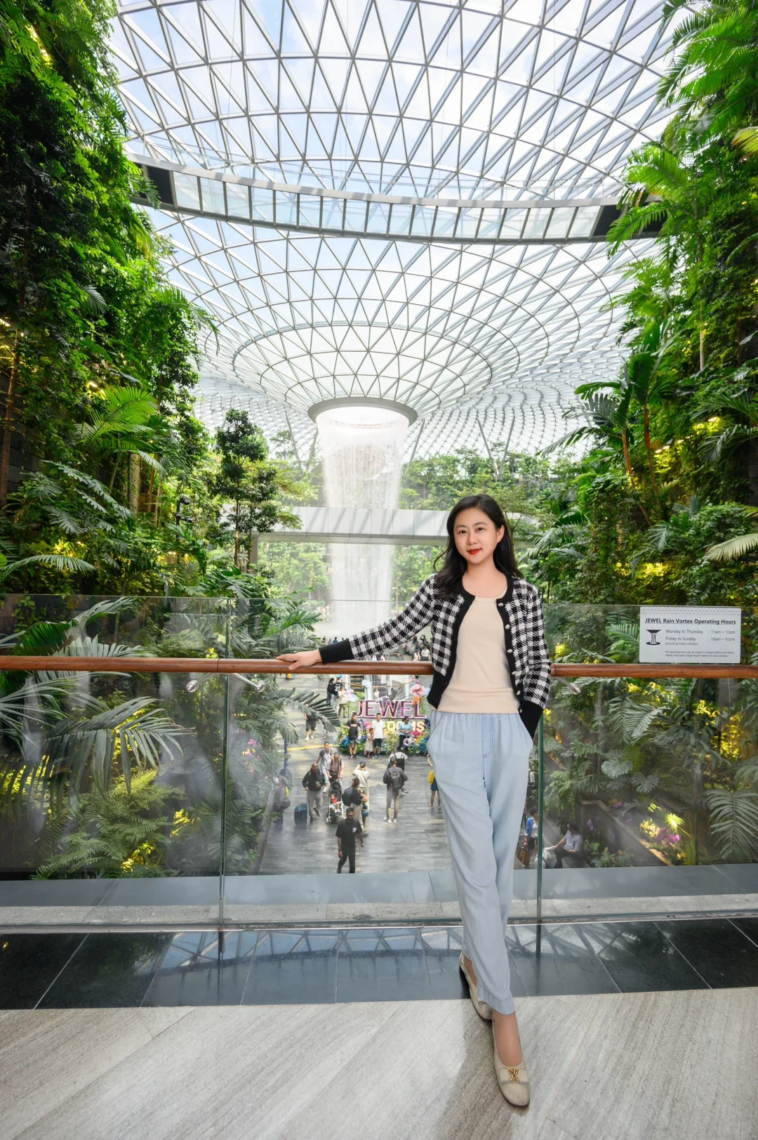 其实瀑布在T1航站楼旁边的星耀樟宜商场里面,进入商场就能看到。