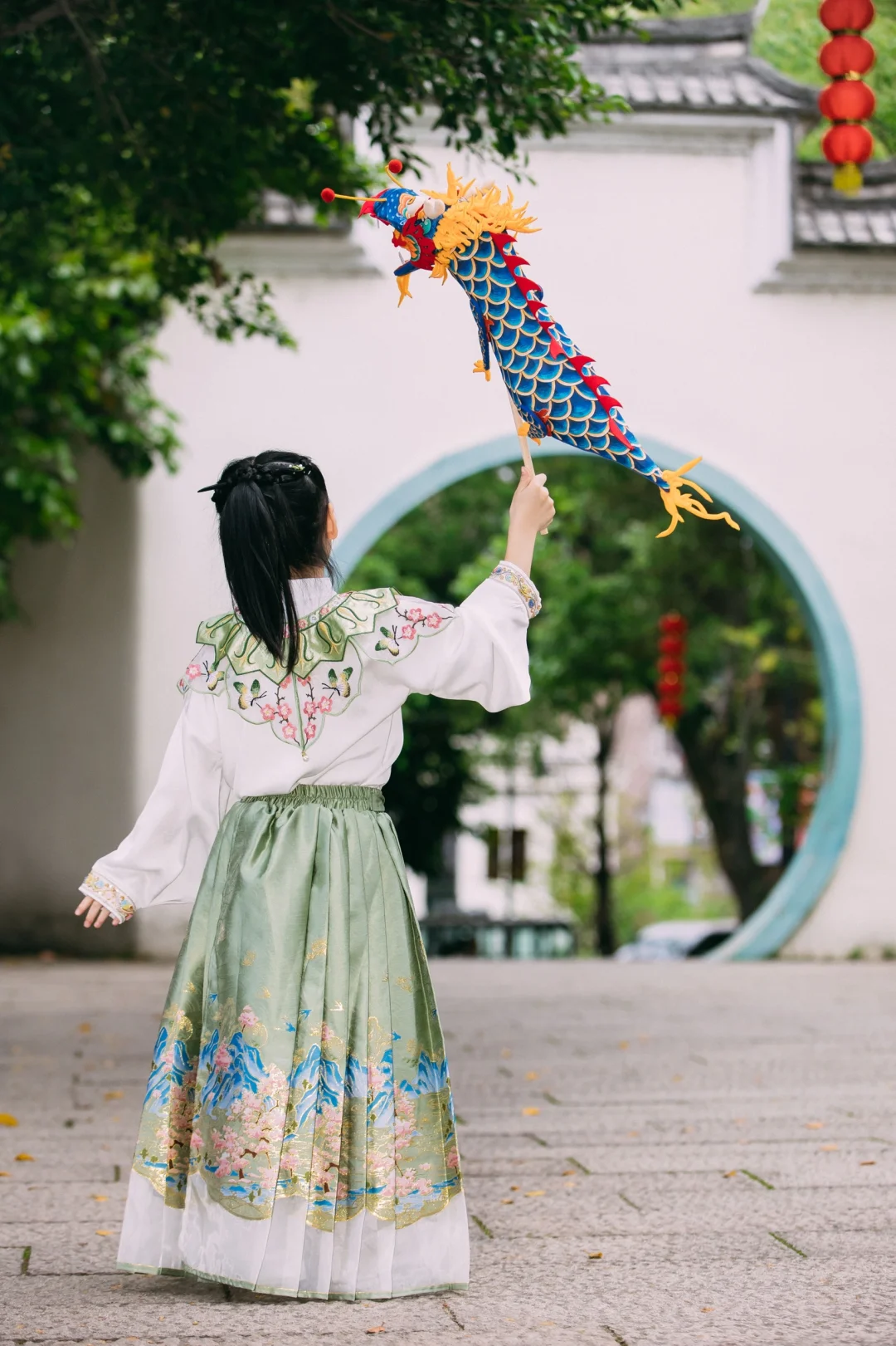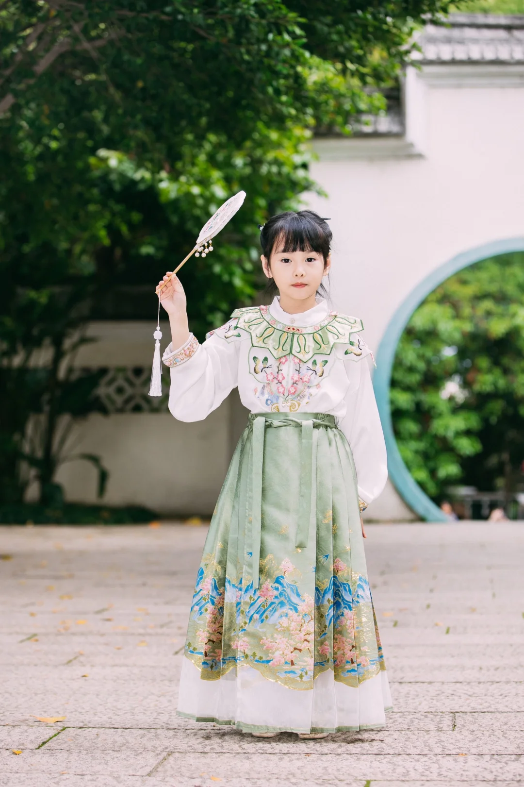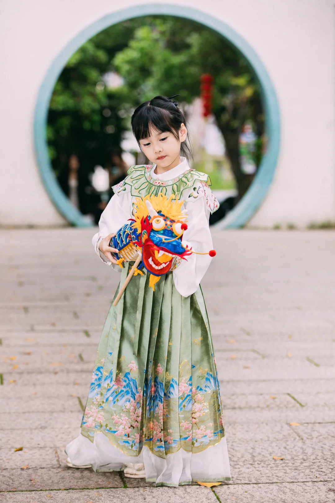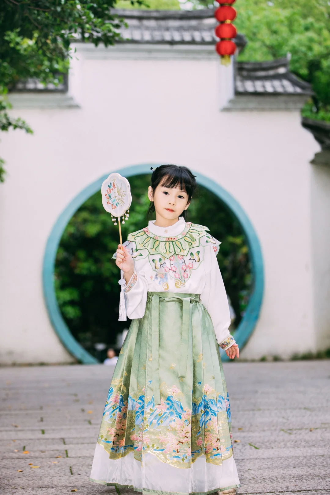 花点心思说爱你 马面裙 儿童汉服 王的手创福州烟台山 福州旅⾏ 女童汉服春日追高四级跳