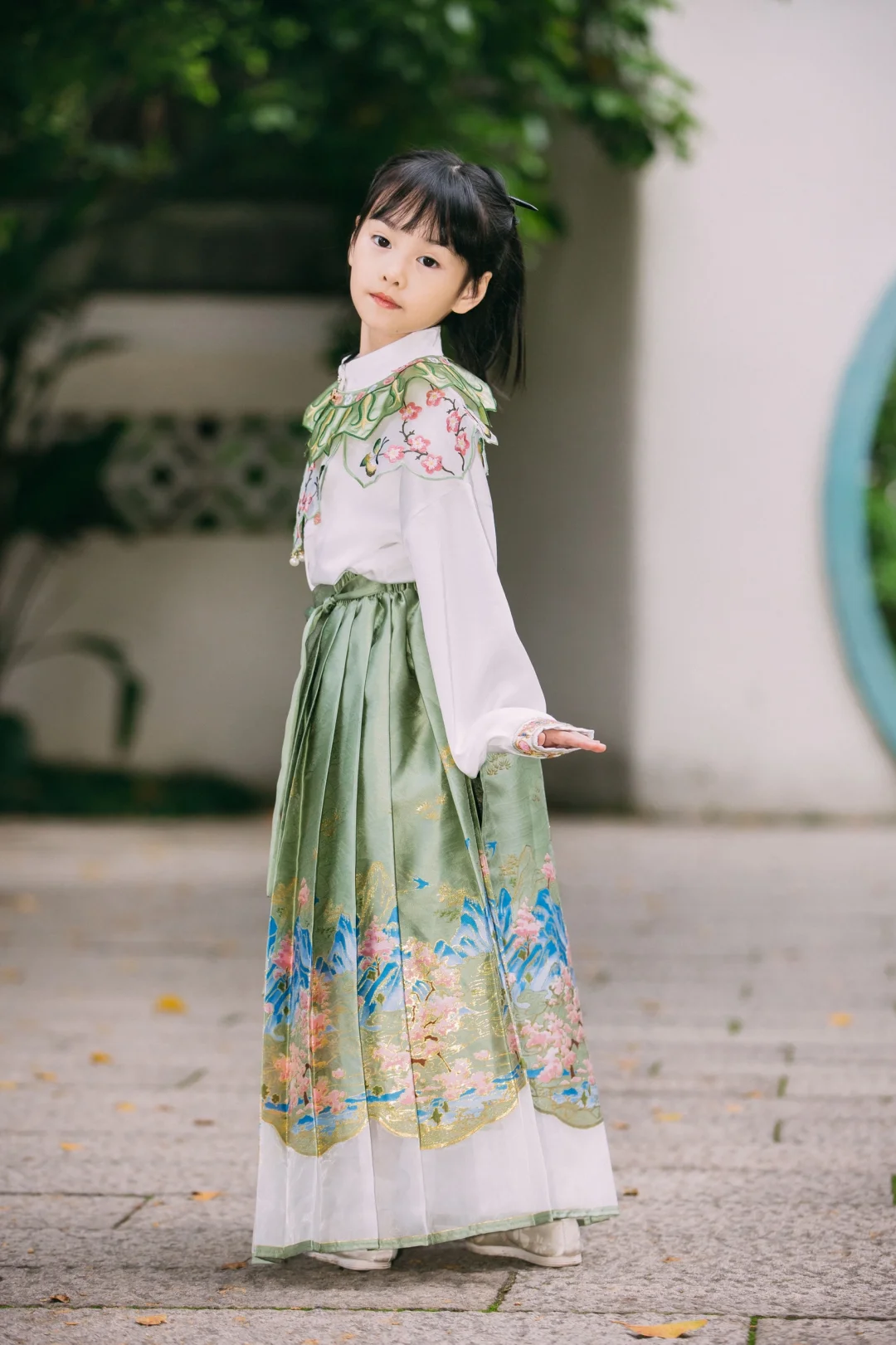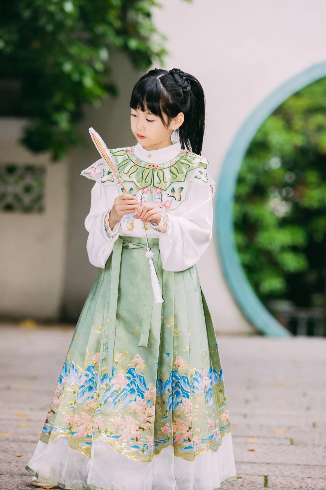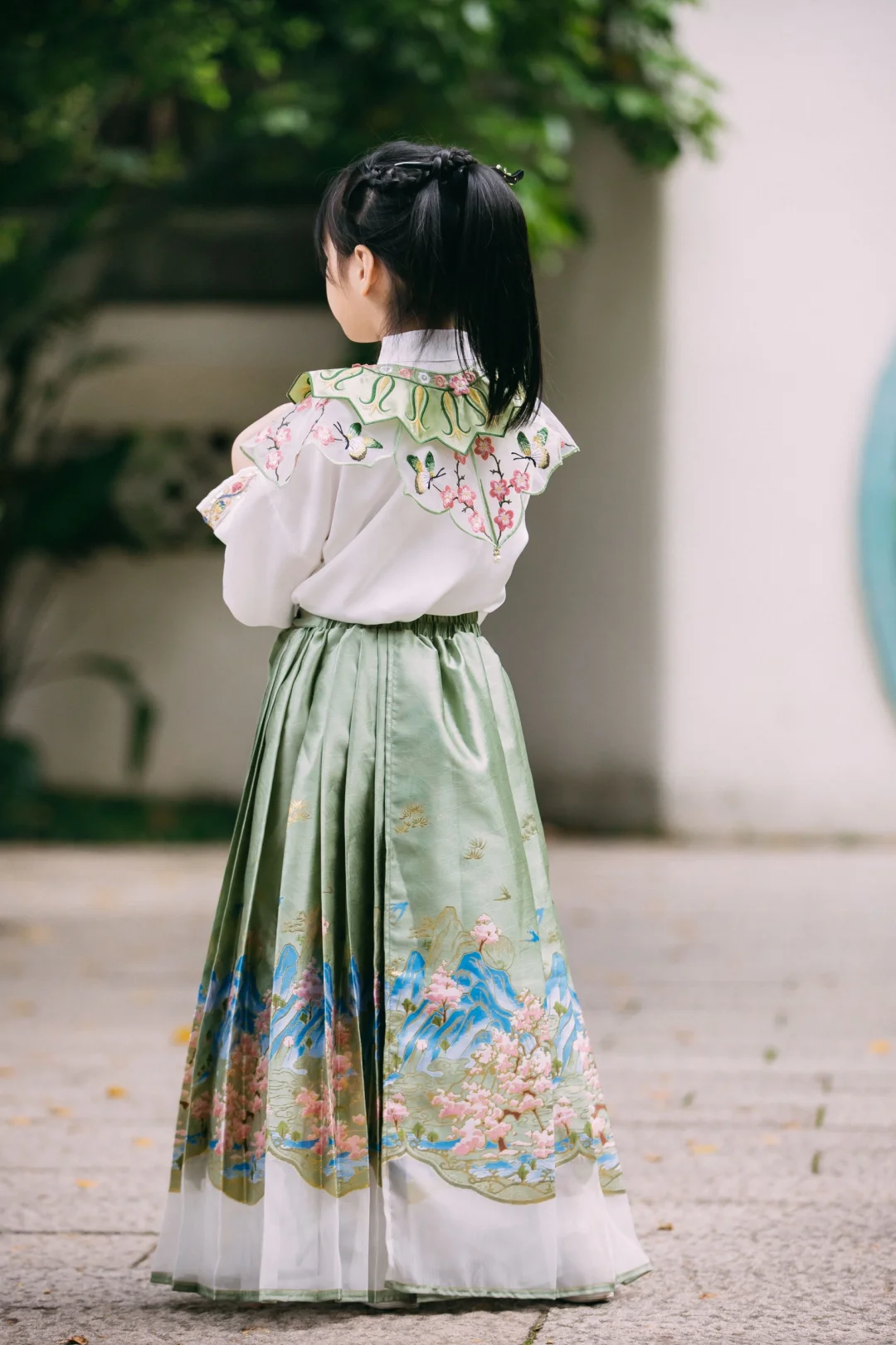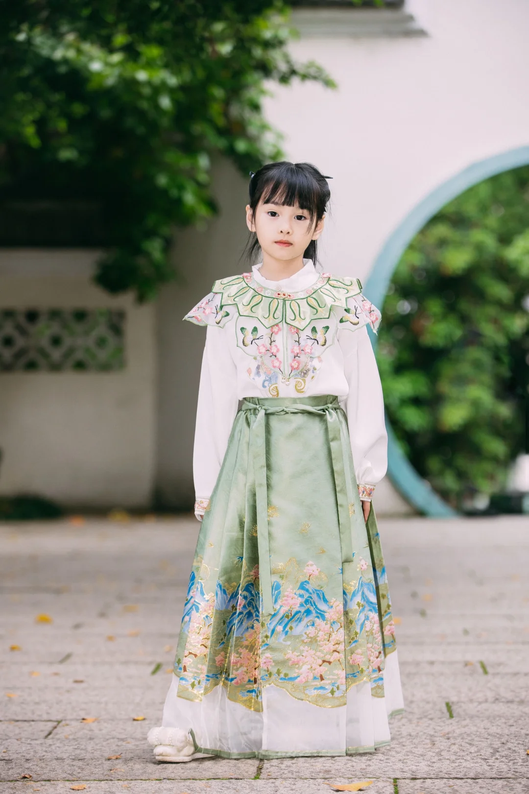 花点心思说爱你 马面裙 儿童汉服 王的手创福州烟台山 福州旅⾏ 女童汉服春日追高四级跳