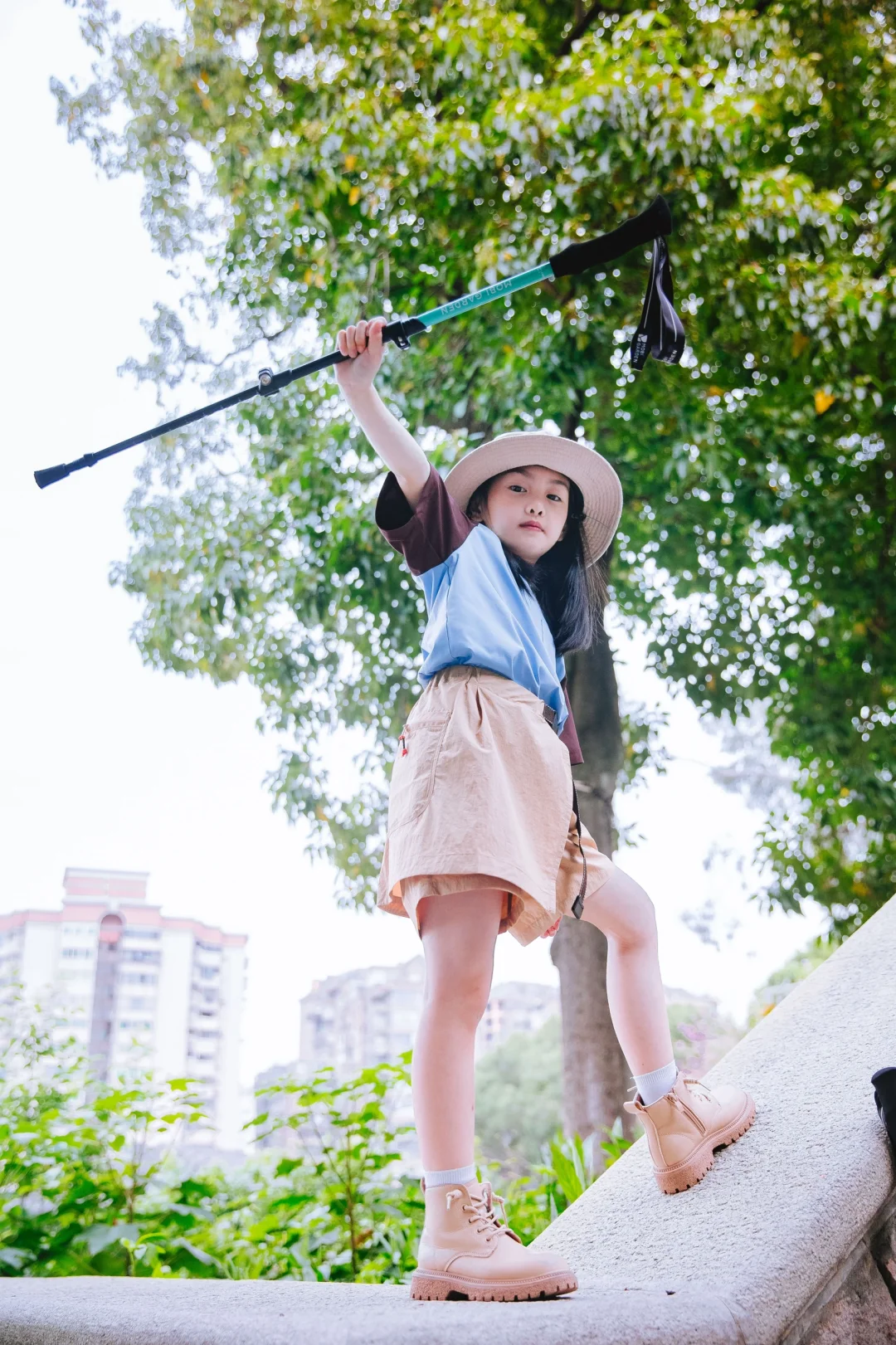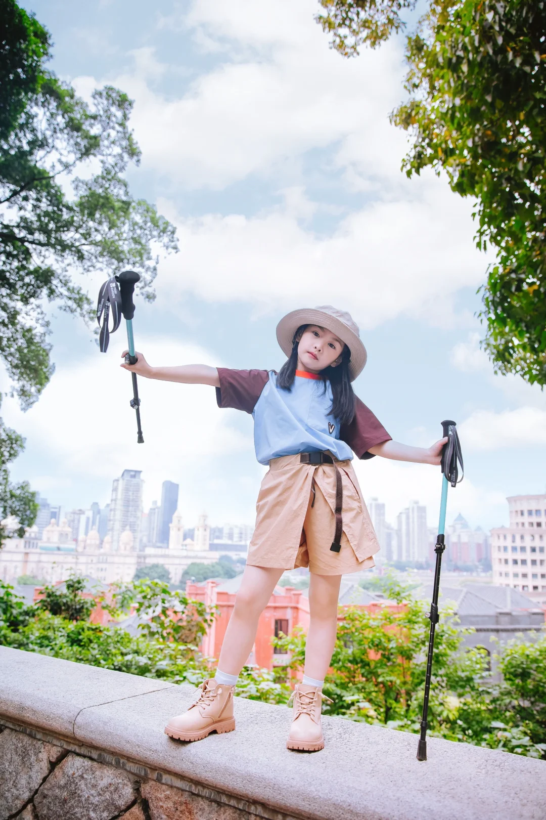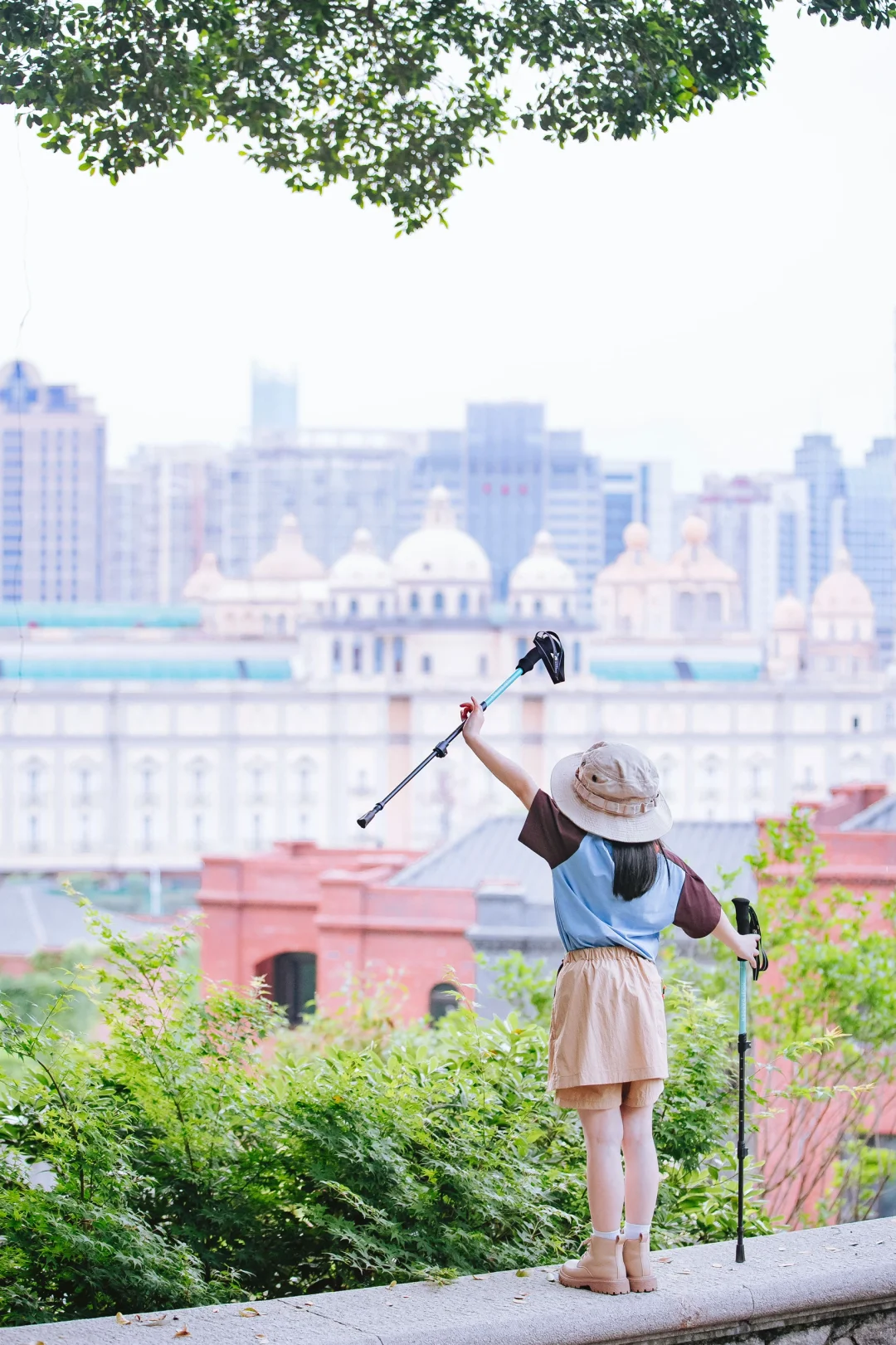 福州烟台山公园右转50米有个很棒的打卡点,俯瞰闽江,中洲岛烟台山的风景尽收眼底,站在山上有征服烟台山的霸气~VECTOR彩虹Tee和疾走裙好爬山好适合户外哦~