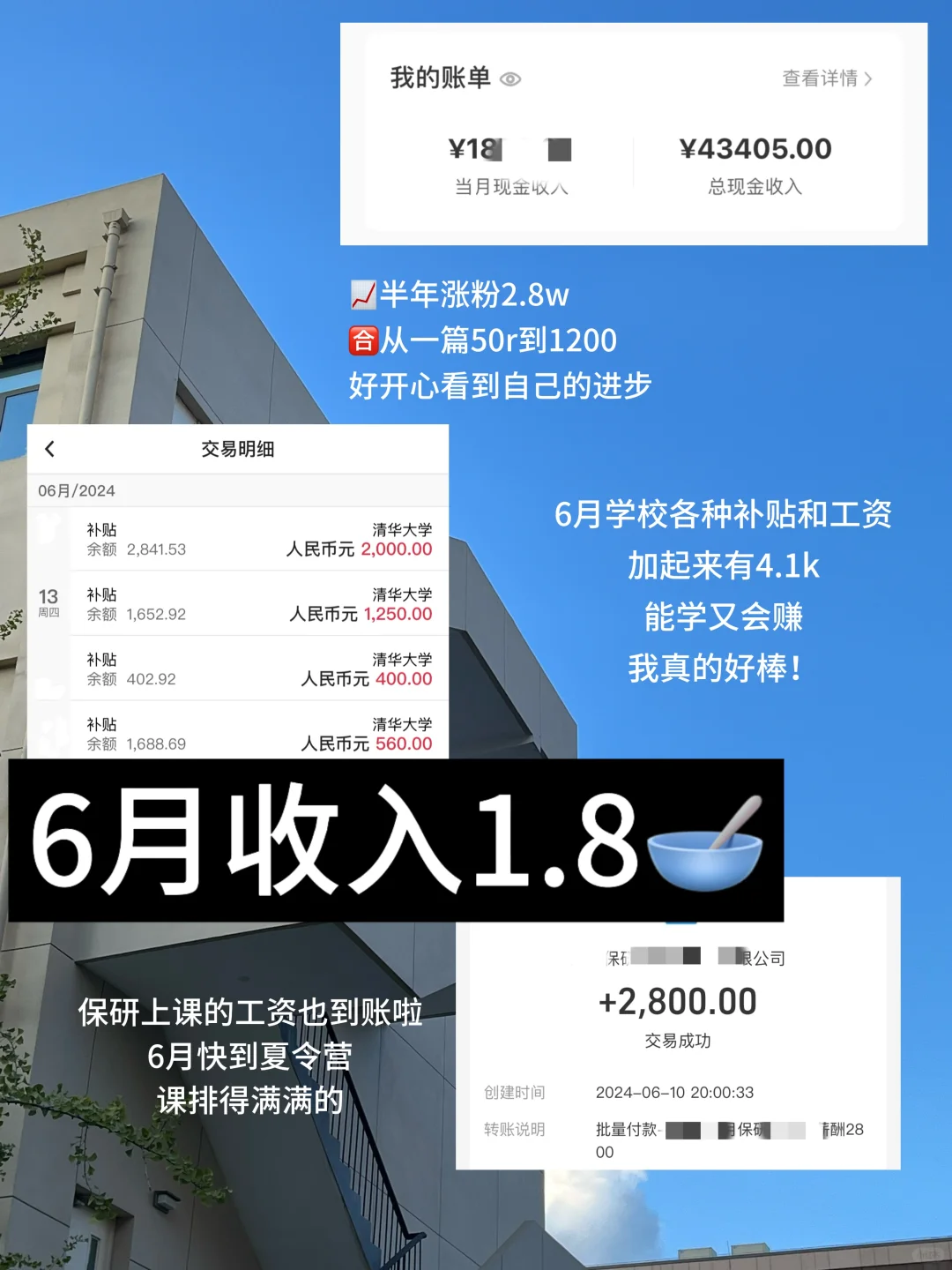 回学校后开始分享清华日常,三个月涨粉6000➕,报价:600,月收入2k