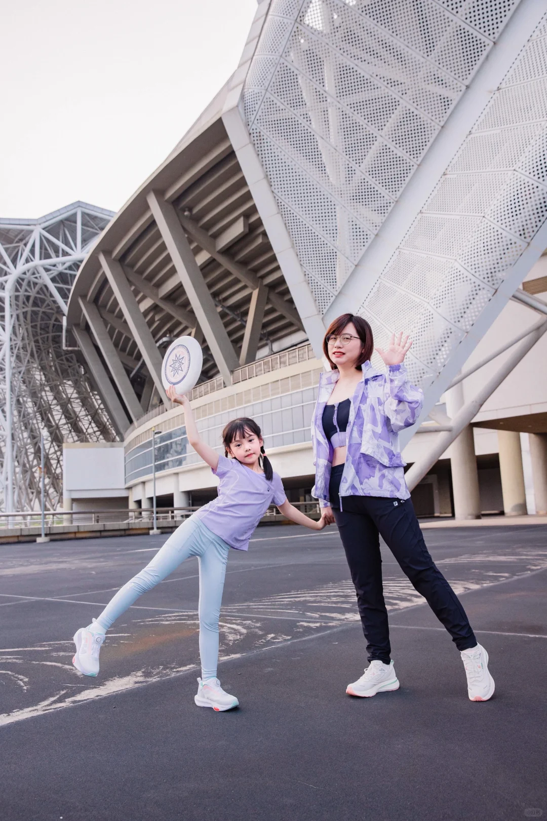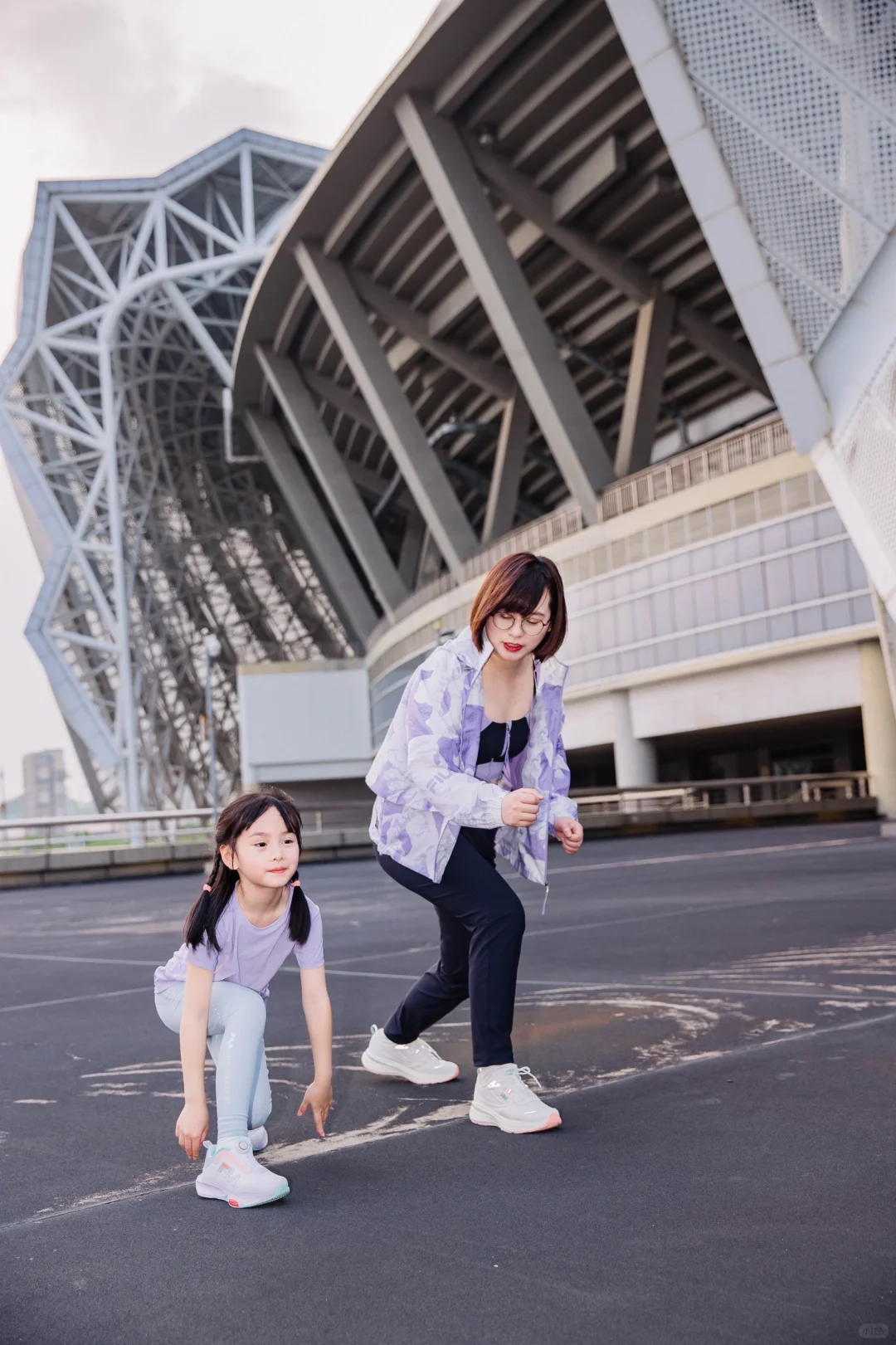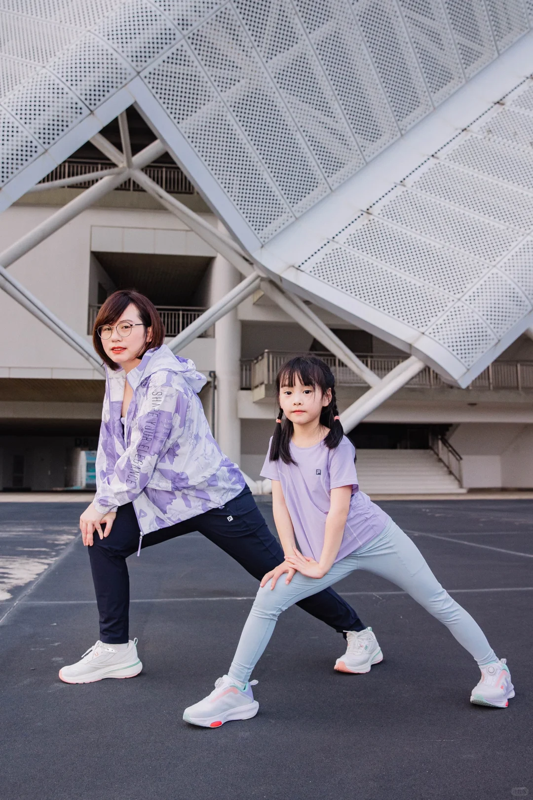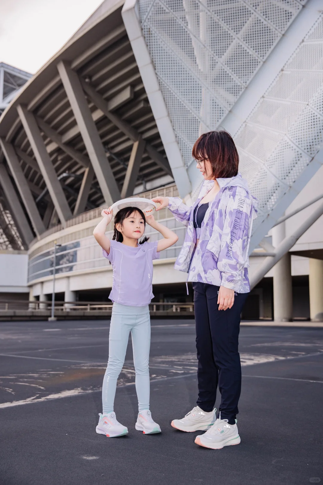 哎呀,亲子装真不错。跟孩子一起运动的快乐呀