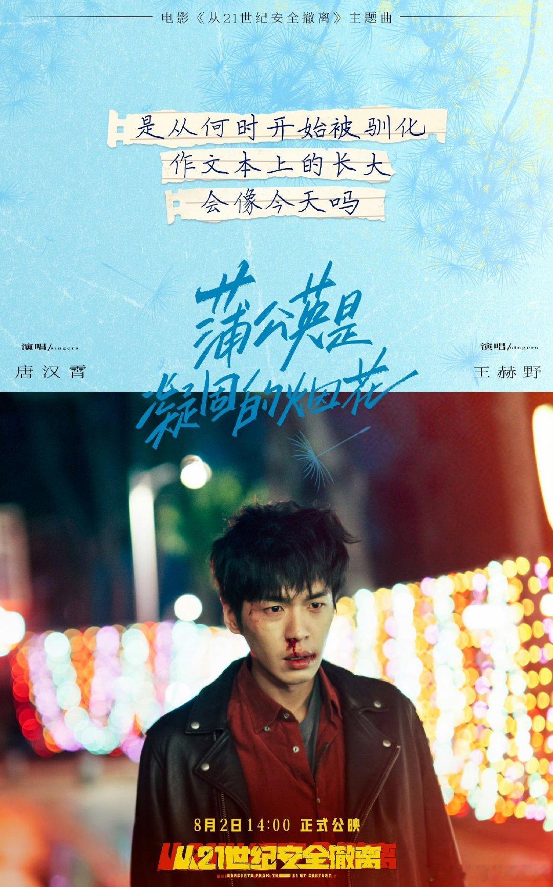 #从21世纪安全撤离今日上映#没想到今日就上映了,也太激动了,我要赶紧去电影院买票了,就冲张若昀我也要去,而且主题曲的名字还使用了蒲公英,也太浪漫了吧