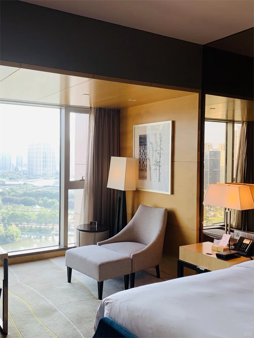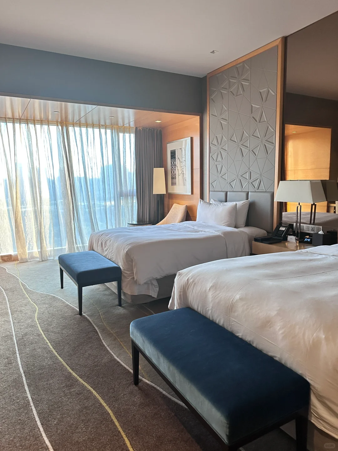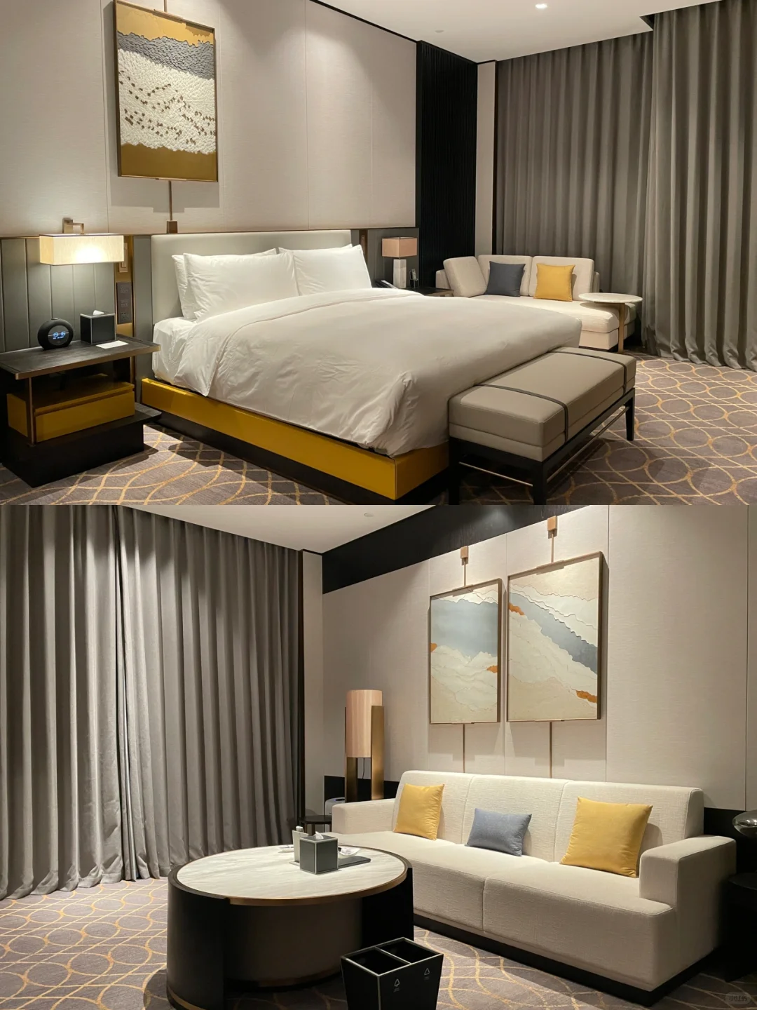 ✔️房间非常干净舒适性价比超高,透亮简洁有层次。五星级酒店真的没话说,隔音也很好很安静。每间房都有超大的全景落地窗,窗帘、灯光等都是电动的,卫浴间是干湿分离的,真的很赞!