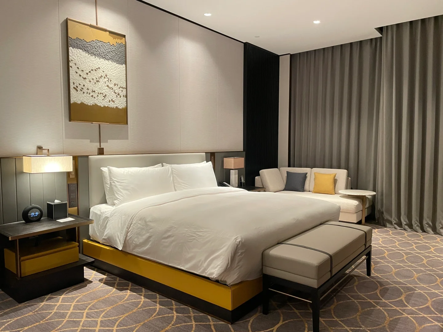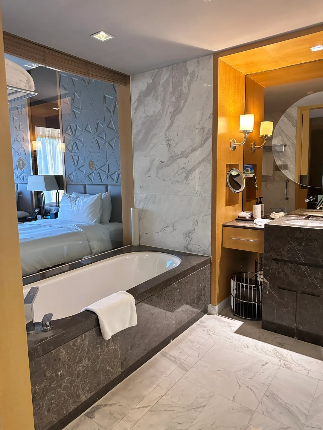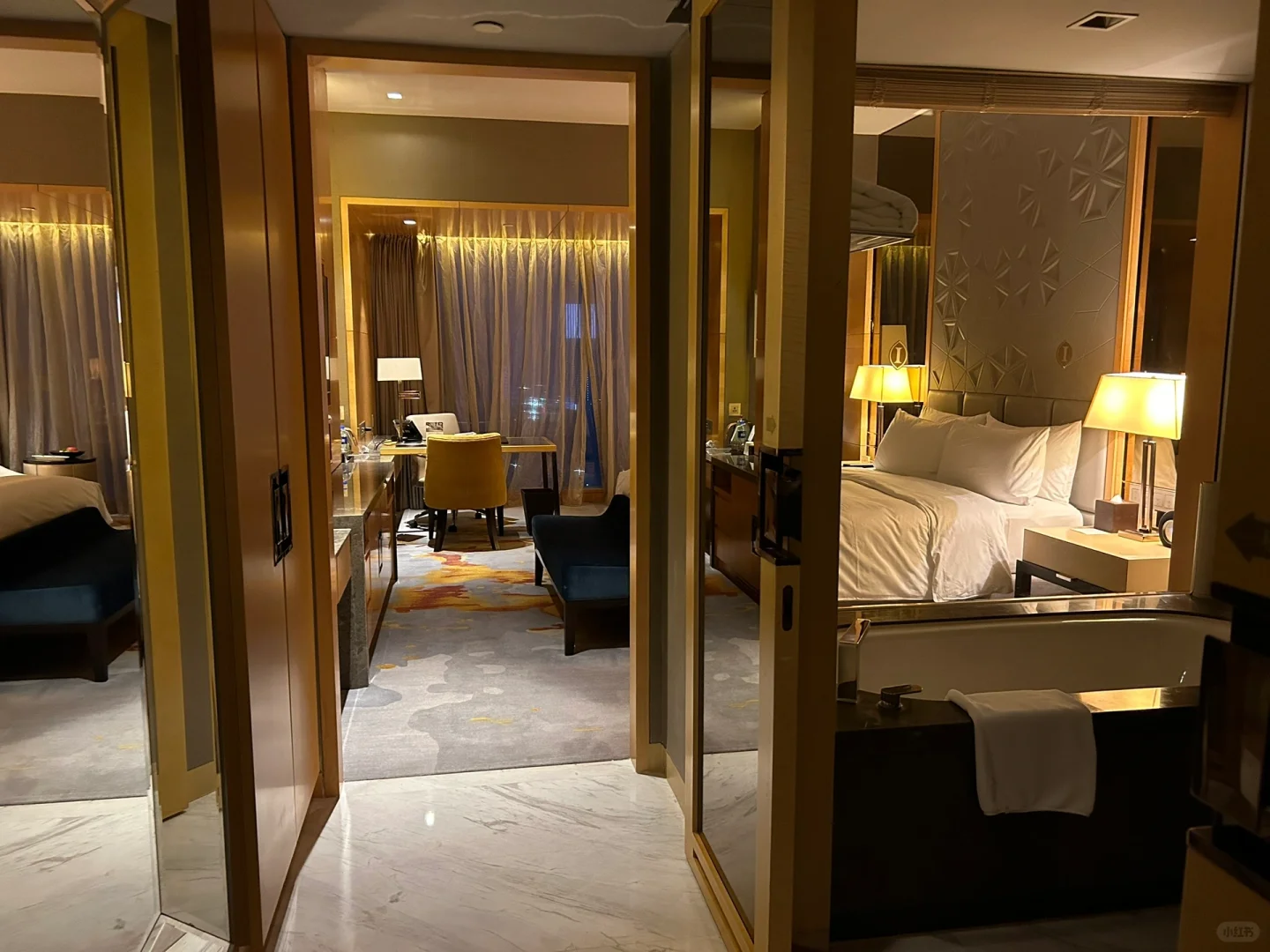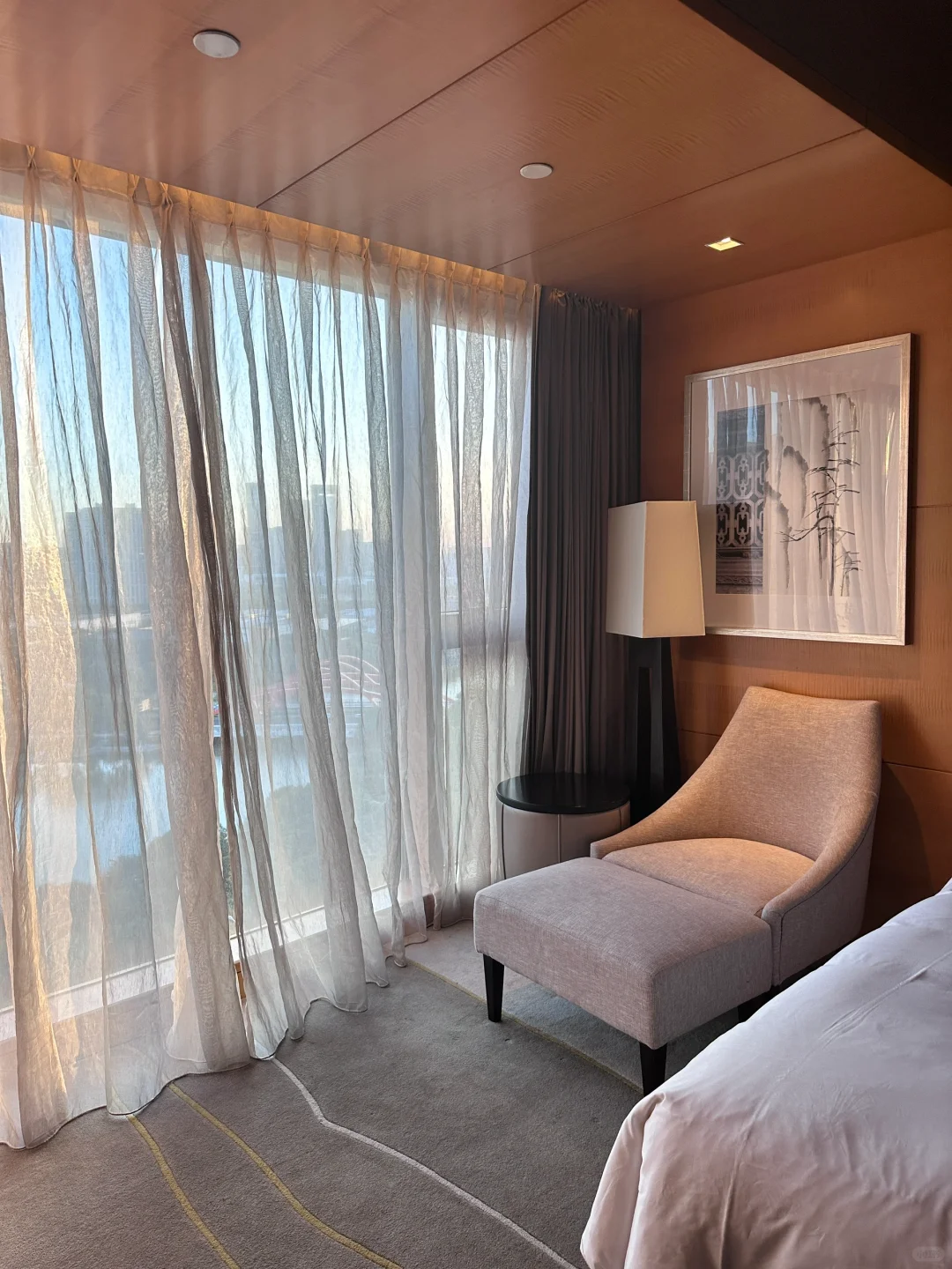 ✔️房间非常干净舒适性价比超高,透亮简洁有层次。五星级酒店真的没话说,隔音也很好很安静。每间房都有超大的全景落地窗,窗帘、灯光等都是电动的,卫浴间是干湿分离的,真的很赞!