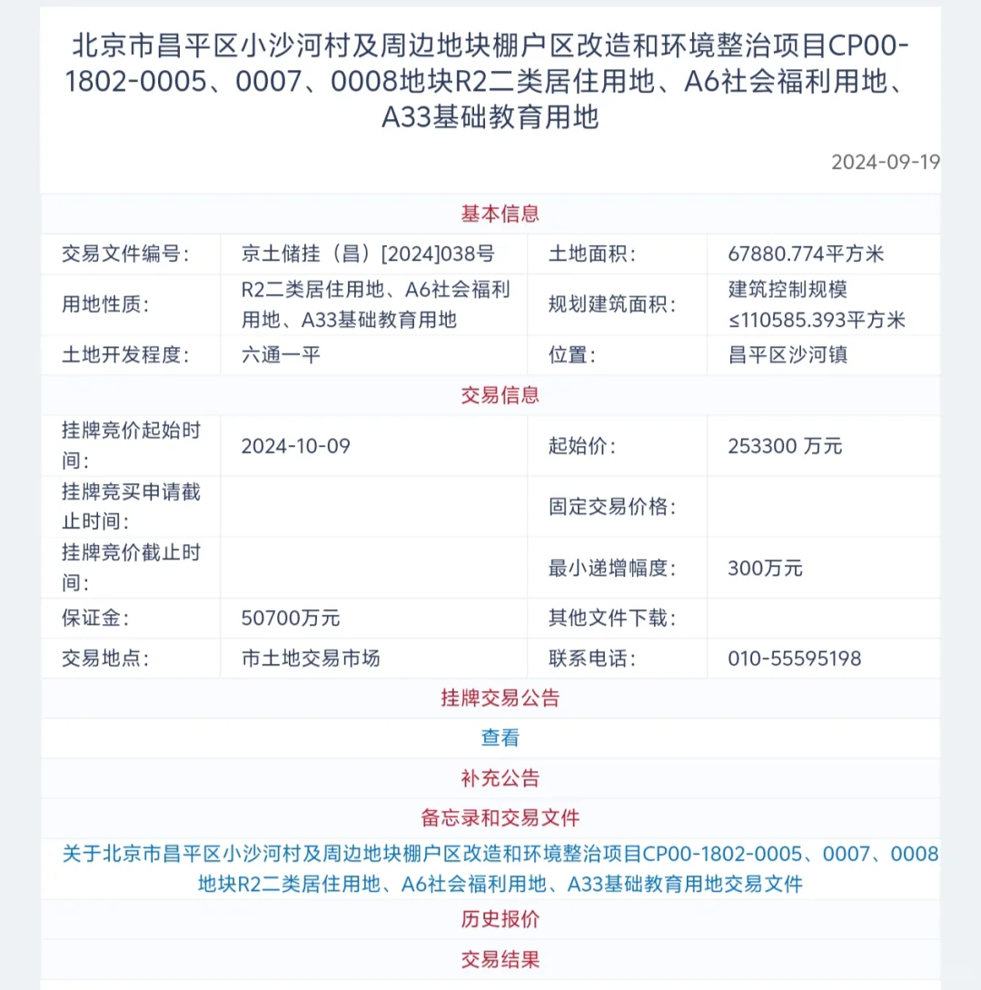 根据挂牌文件信息,昌平小沙河地块总土地面积约6.79万㎡,建筑规模约11.06万㎡。