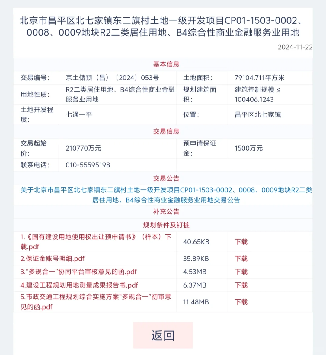 地块交易起始价21.08亿元,预申请受理时间自2024年11月22日起至2024年12月23日下午17:00。
