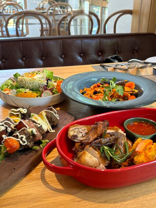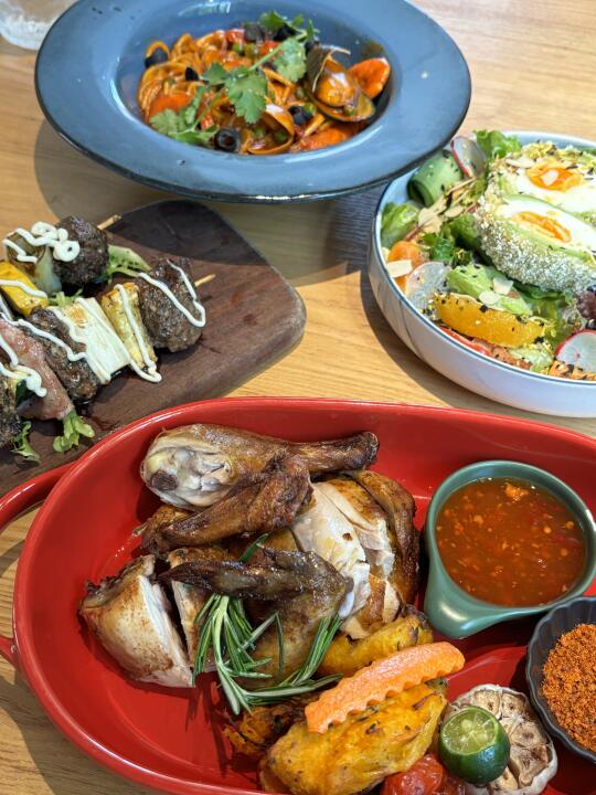 【烤鸡佐烤南瓜】烤鸡稍微有点干,但带着皮吃还是很不错!烤南瓜是最出众的!南瓜很甜外面被烤过更增添一番风味!