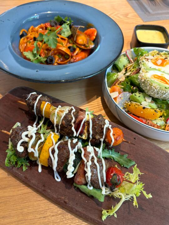 【海鲜意面】🦞有一股不知道什么香料味,倒也不难吃,对我来说有点小辣,大虾和青口都很新鲜还是很不错滴~