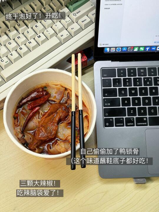 晚上面对一大堆任务干不下去的时候就来泡一桶板面,非油炸的二指宽面劲道爽滑,配上整颗大辣椒的提神,浓郁的牛油汤底香满整间屋子,感觉自己又能再干两小时🔥或许这板面真是有点玄学在身上的,吃二指宽面,路越走越宽