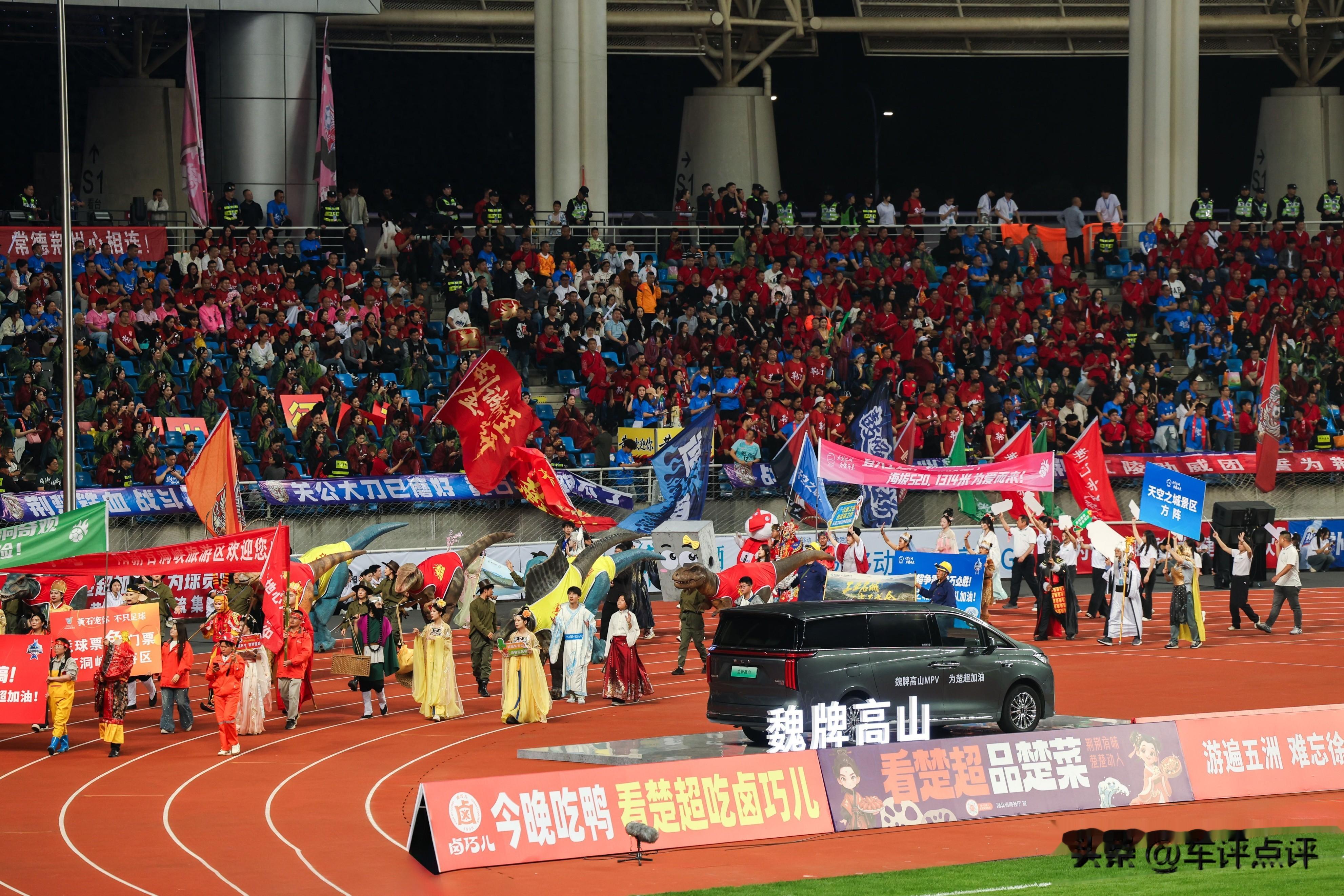 4月12日晚,湖北奥体中心,首届楚超联赛揭幕战在3.2万名观众的欢呼声中火热开赛。而在球场的聚光灯之下,除了绿茵场上的球员们,另一个“选手”同样抢足了风头——从环绕大屏到观众席,从后备箱市集到巨型Tifo,魏牌高山的元素几乎承包了整座场馆的视觉焦点。
