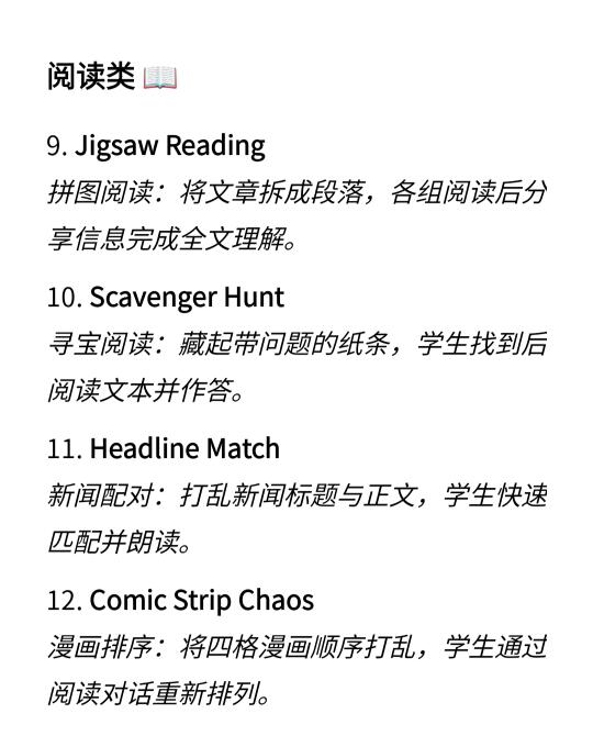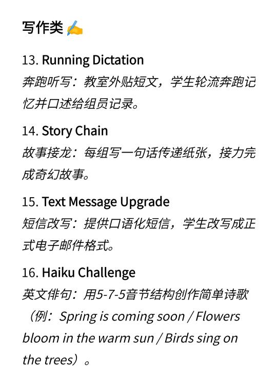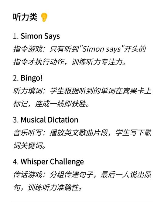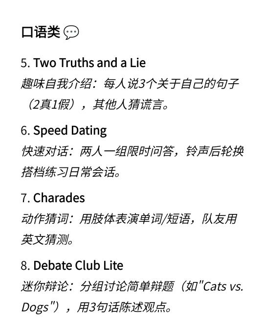 Hi,我是Ariel,毕业于UCL,是一名大学英语老师,即将去港理工读博,这篇分享为学生设计的20个有趣的英语课堂小游戏,可用于英语听力,口语,阅读,写作等教学过程中,还可适合课堂上活跃气氛或用作课外活动。[大笑R]