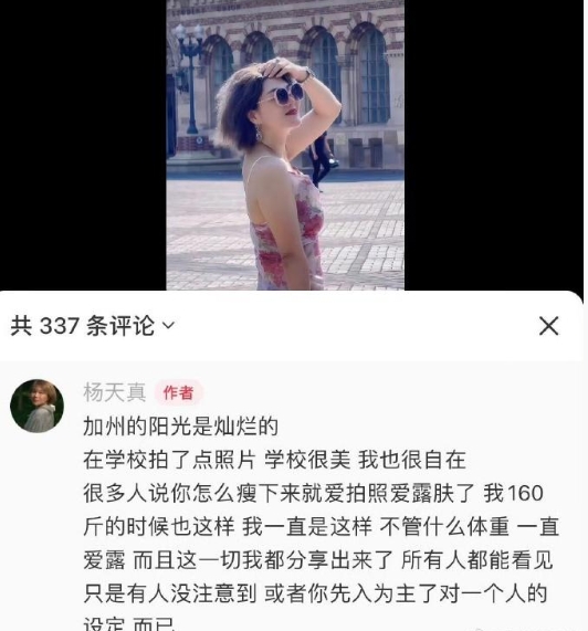 杨天真:我160斤的时候也这样。挺欣赏杨天真无论胖瘦都好自信,状态也是越来越好。
