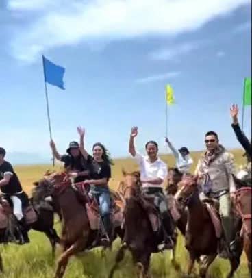 吴京和赵文卓两位功夫巨星同时现身新疆草原,策马扬鞭,巅峰对决,上演了一部现实版的草原英雄聚会,吴京这白衬衣显得胸肌十分发达,不愧是硬汉形象,太有魅力了,赵文卓老了,感觉有些力不从心,身材有些发福走样,花衬衫与硬汉形象十分不符,这是改变路线了,这装扮看了太不舒服了,好怀念以前那个在荧屏上英气飒爽的赵文卓!