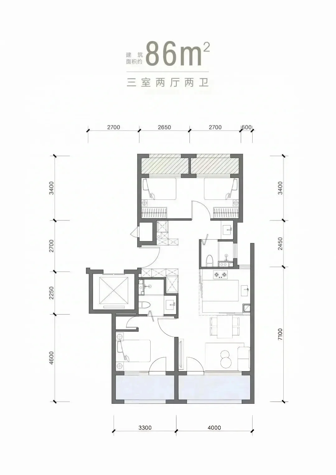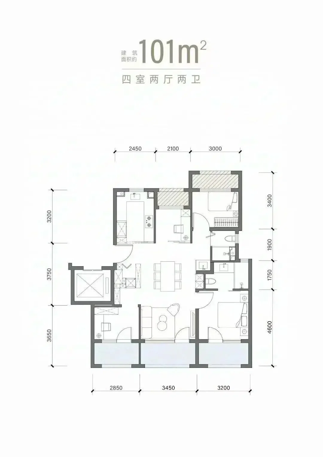 四叶格局分庭,宽厅聚气融情,一室皆安