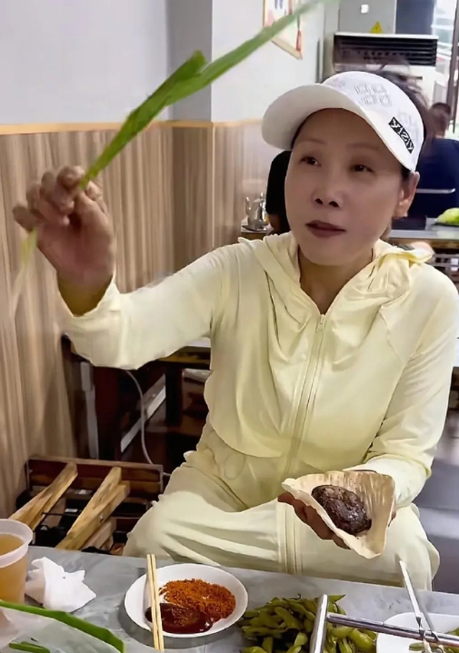 田震现身淄博吃烧烤,小葱加肉十分满足,素颜现身超接地气!