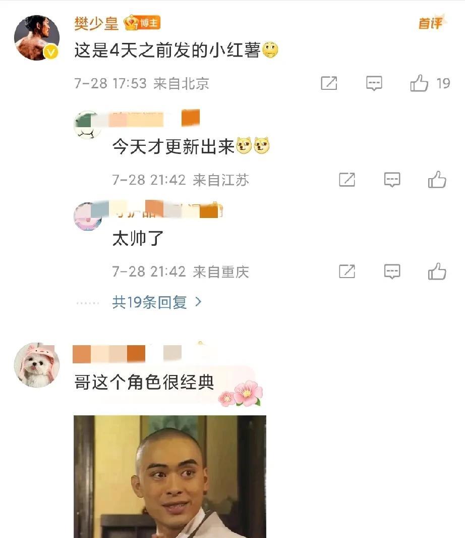 樊少皇发文配图虚竹头像,说的话有点微妙 7月28日下午,樊少皇在社交媒体发文,虽