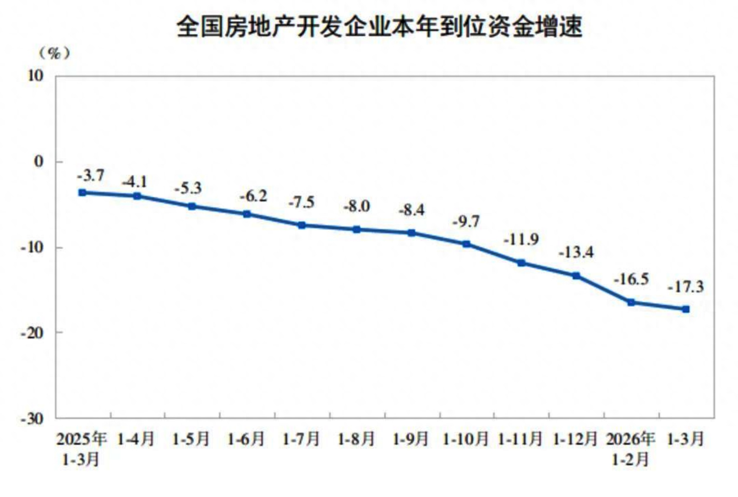 房地产开发企业到位资金20524亿元,同比下降17.3%
