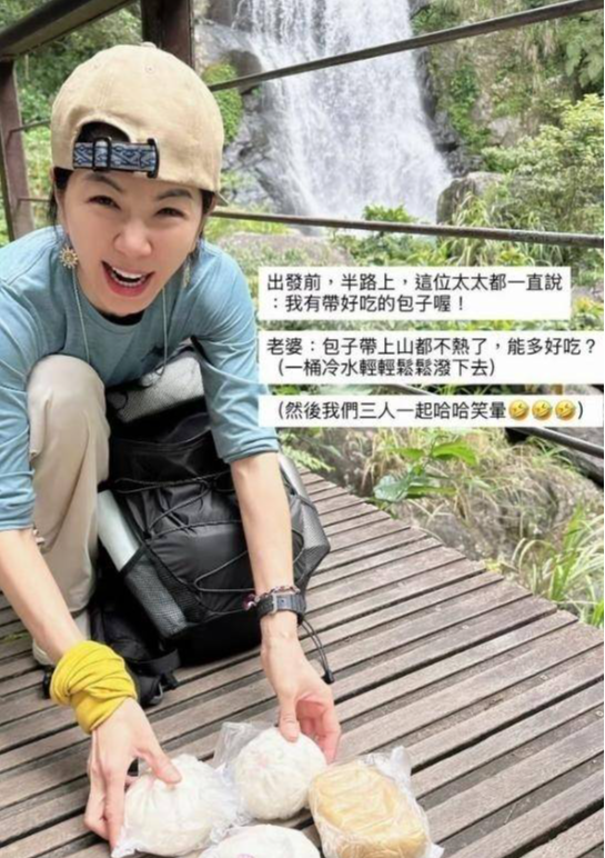 44岁的Ella最引人注目,胸前挂着一副老花镜。早前她在演唱会上读信时自嘲道:39岁之后眼睛就不行了。如今连爬山也离不开它,真实又带着几分可爱。她还特意背了一个包子上山,结果全程都凉了,被Selina调侃道:带上来就听个响。三人因此笑成了一团,画面温馨又有趣。