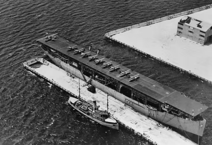 第一艘“游骑兵”号 (CV-4) —— 纯血统的先驱,这艘航母在美国航母发展史上具有里程碑意义,它是美国摆脱了将战列巡洋舰改装成航母(如“列克星敦”级)的思路后,第一艘专门按照航母标准设计并建造的军舰。受限于《华盛顿海军条约》的吨位限制,CV-4的排水量较小(标准排水量约1.4万吨),导致其耐波性较差,飞行甲板狭窄。为了最大化甲板面积,它最初没有岛式舰桥,烟囱也是铰链式可向两侧放倒的(类似“兰利”号),后来才加装了一个小型的舰岛。