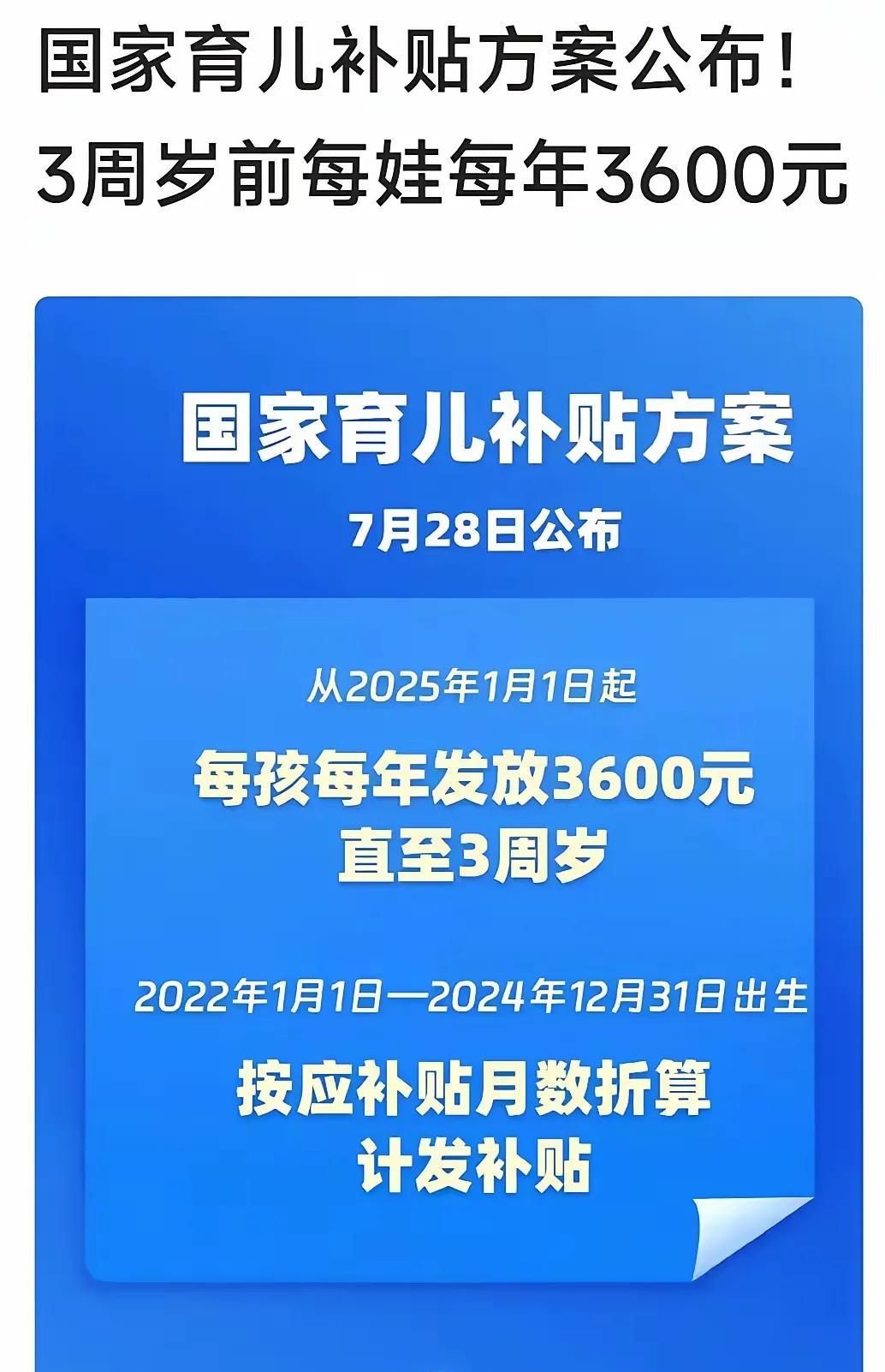 “育儿补贴”VS“独生子女补贴”!听闻国家推出了育儿补贴方案,每年发放3600元