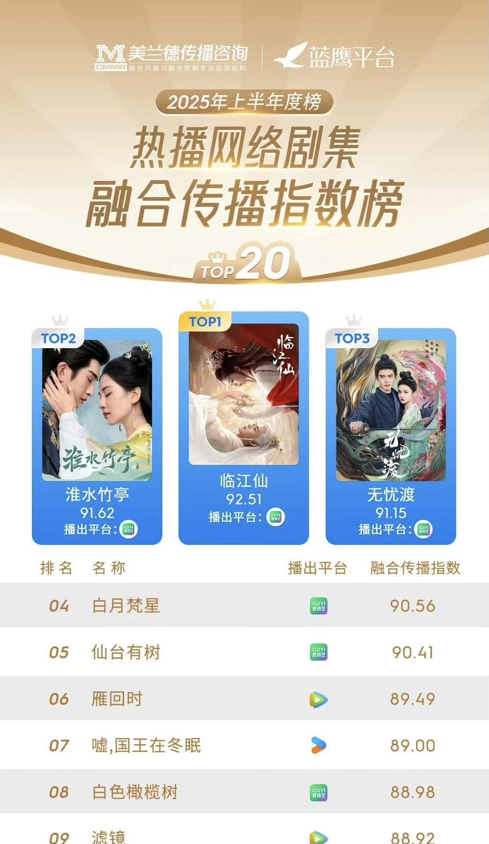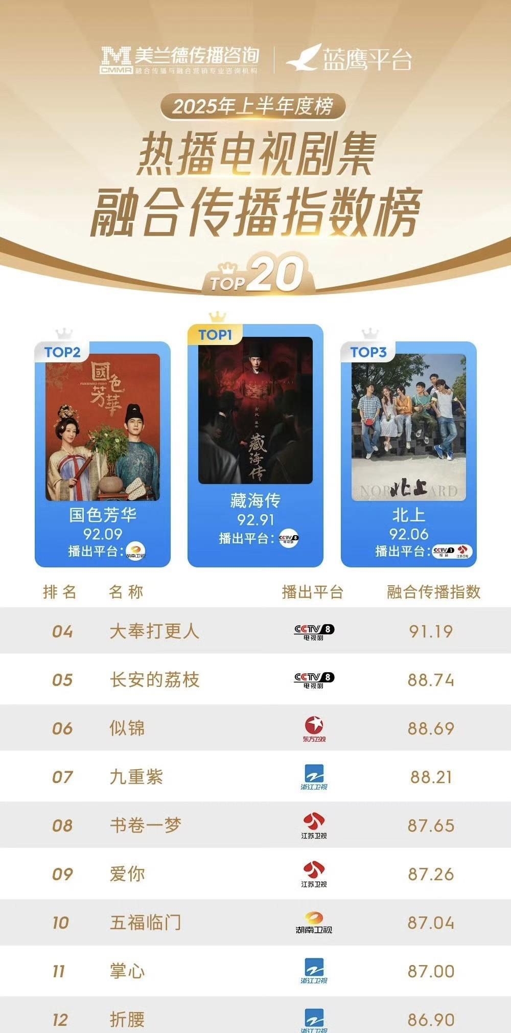 《藏海传》美兰德2025年上半年全网剧集第一,热播电视剧集第一。难为酸鸡们好像发