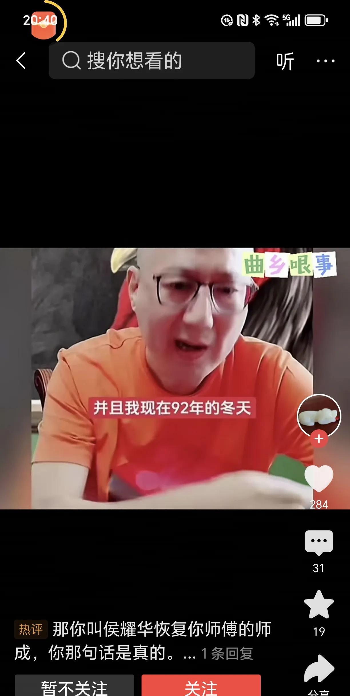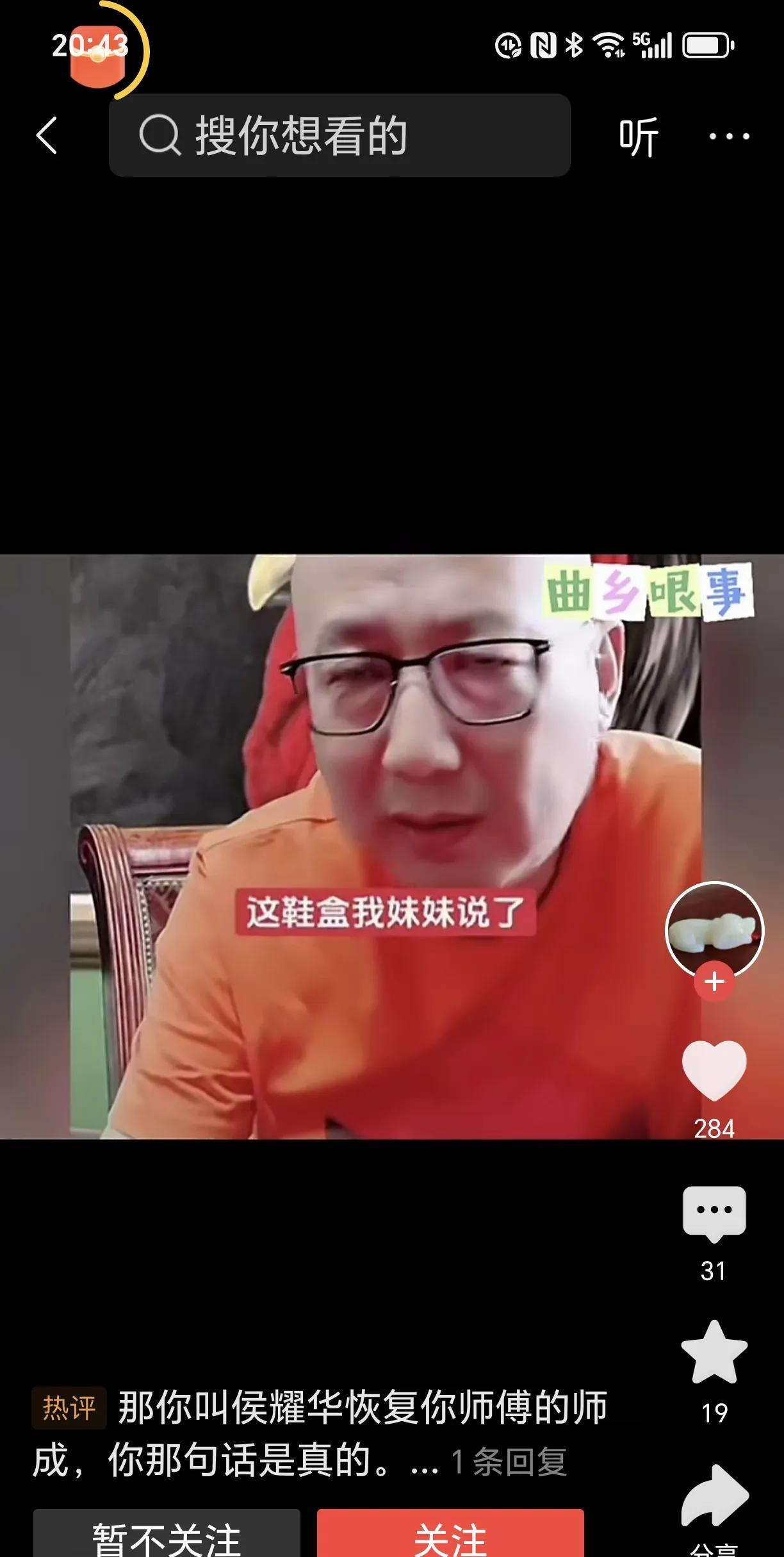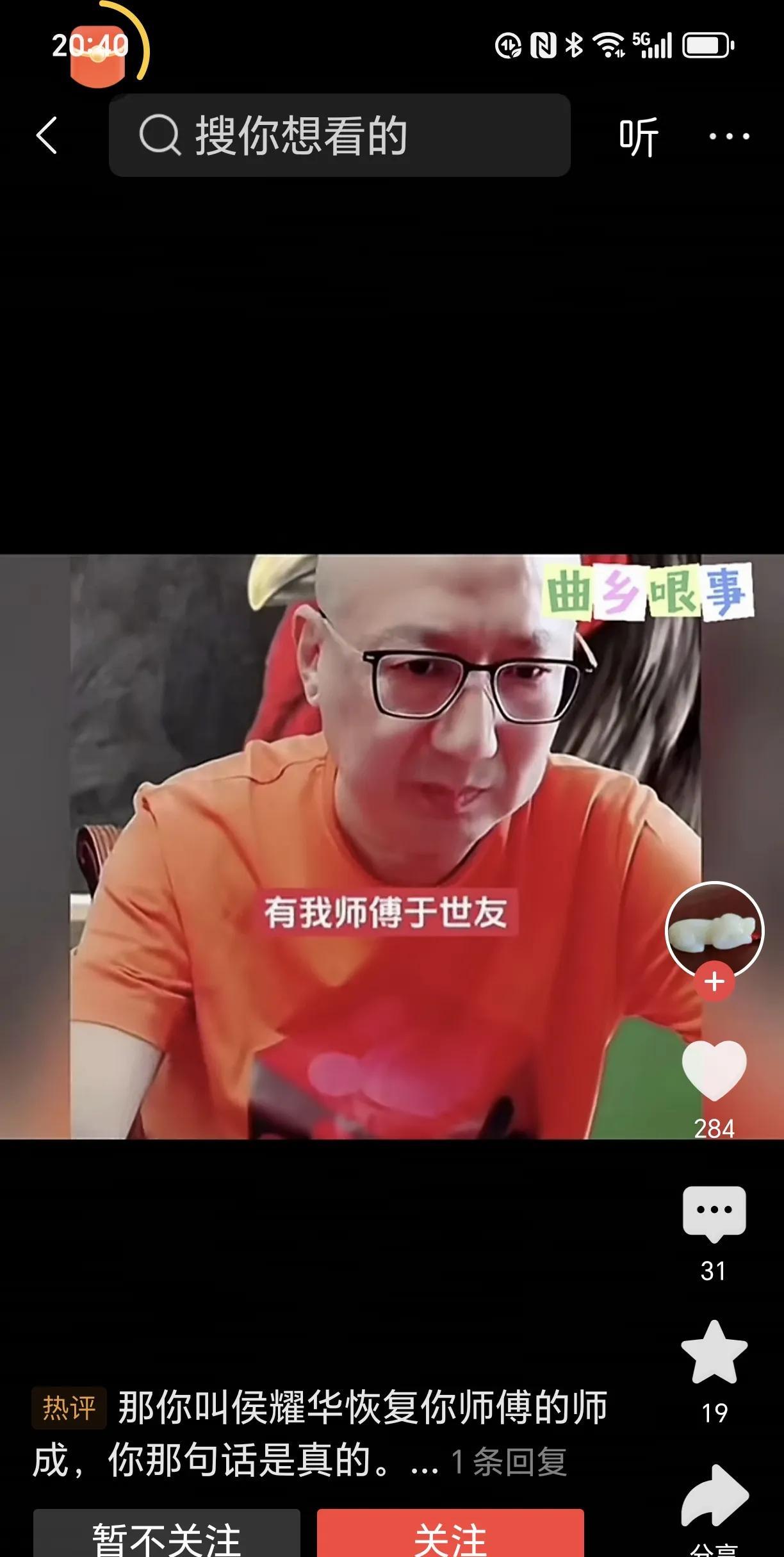 老汪又爆出侯家的猛料,他称原先侯老爷子的手稿是放在一个鞋盒子里的,这些手稿经由侯家姑娘,再被老汪交给他师傅,整理出了一本书。余世友便是侯宝林大师徒弟,书都已经确定了,而且这本书也是由余世友整理出版的。老汪还爆出一个猛料,侯震是侯氏唯一指定的传承人。
