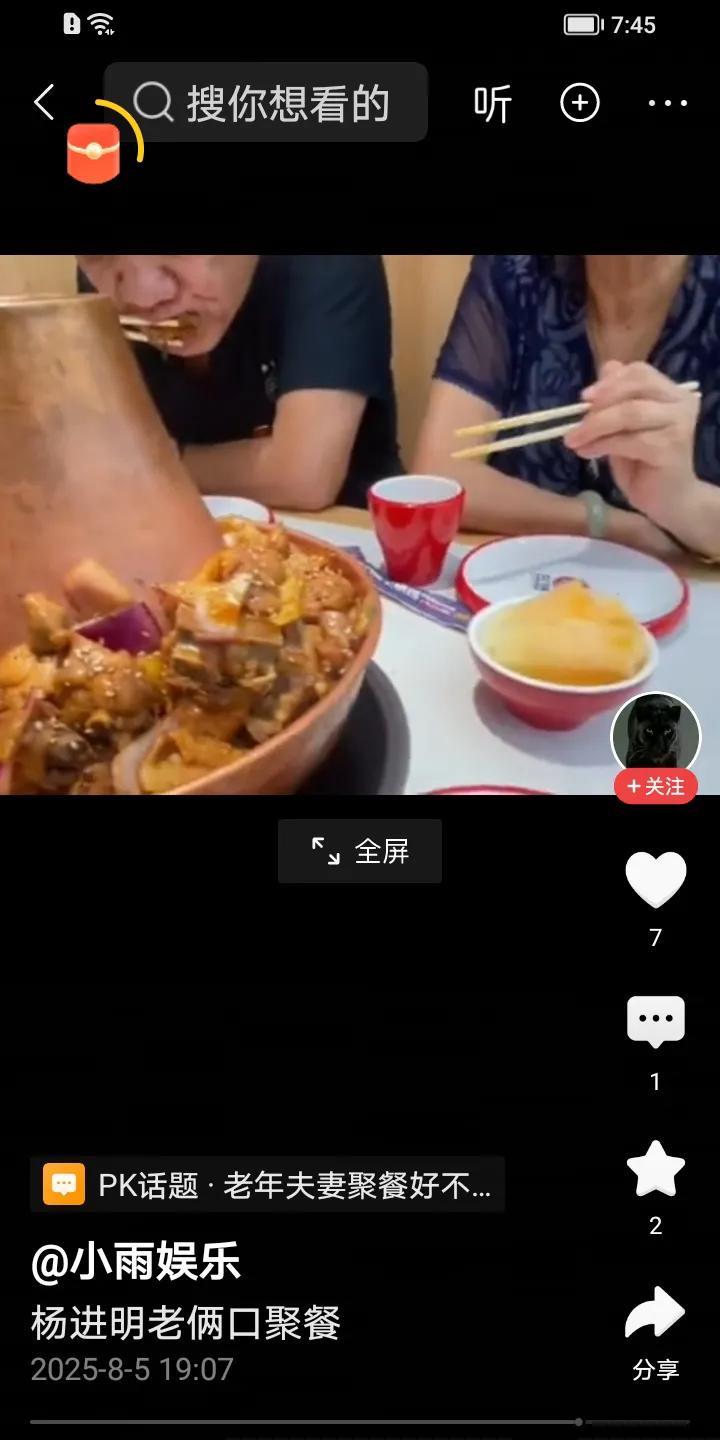 郭德纲的师兄弟杨进明开直播时,很少让老伴露面。这次在烟台吃火锅鸡的时候,他老伴出