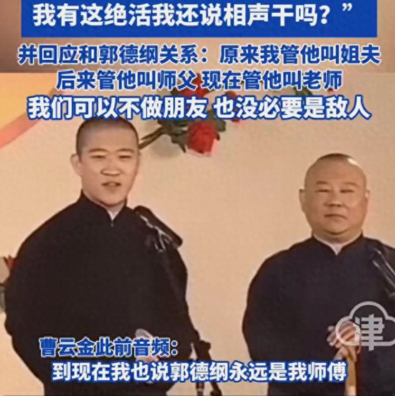 觉得曹云金挺好的,以前年轻气盛不懂事,犯了错误,后面随着年龄、阅历增长,也成熟了。 最重要的是一直尊称郭德纲为传道授业解惑的老师,已经很不错了,能看出来他想和郭德纲重归于好,最起码不是敌人而是朋友。 学会做人,学会做事了意味成熟了。 相互理解,相互包容,相互成就。他如果不走,德云社或许不如现在的德云社。