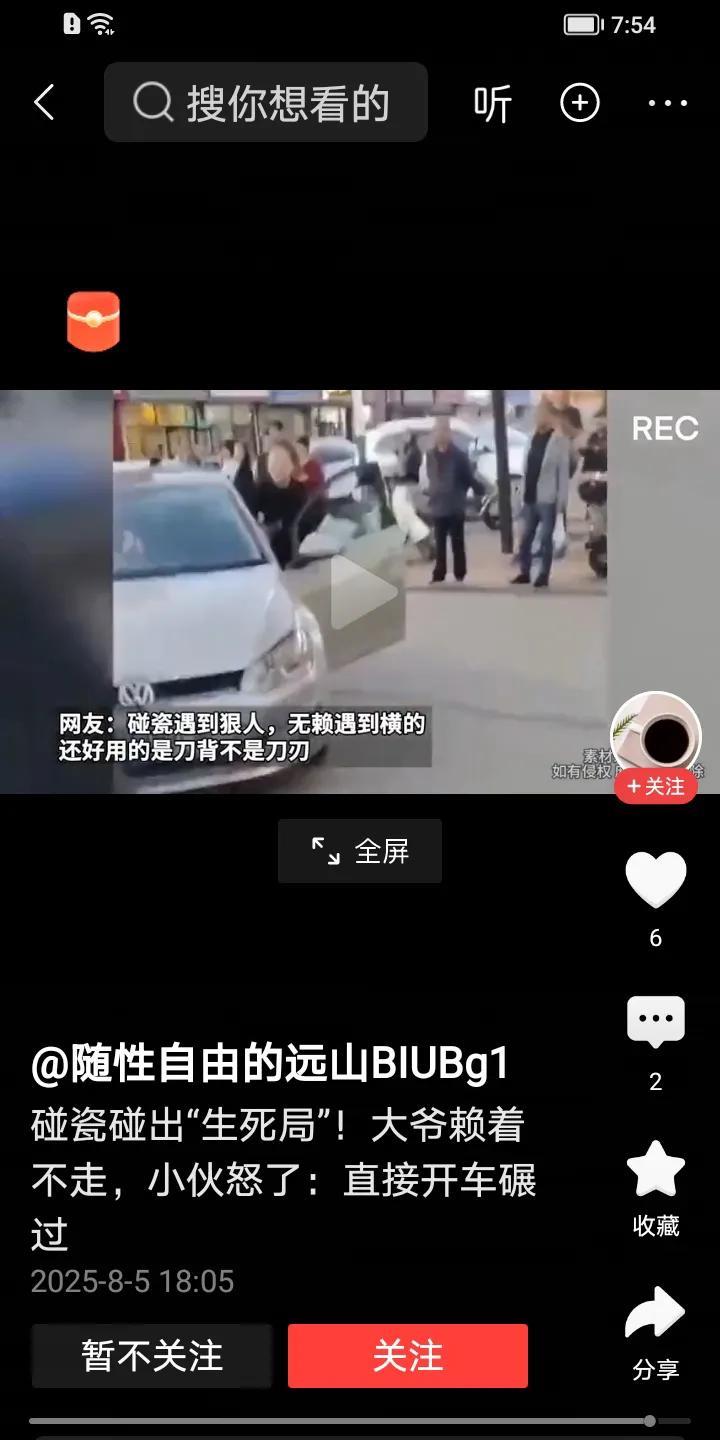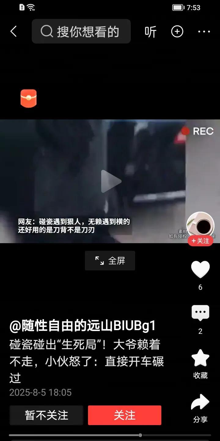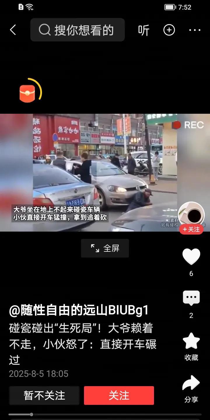 这位碰瓷的大爷强硬地躺在路中间,车被他拦停了。没料到这次是碰上了硬茬,就见那车辆