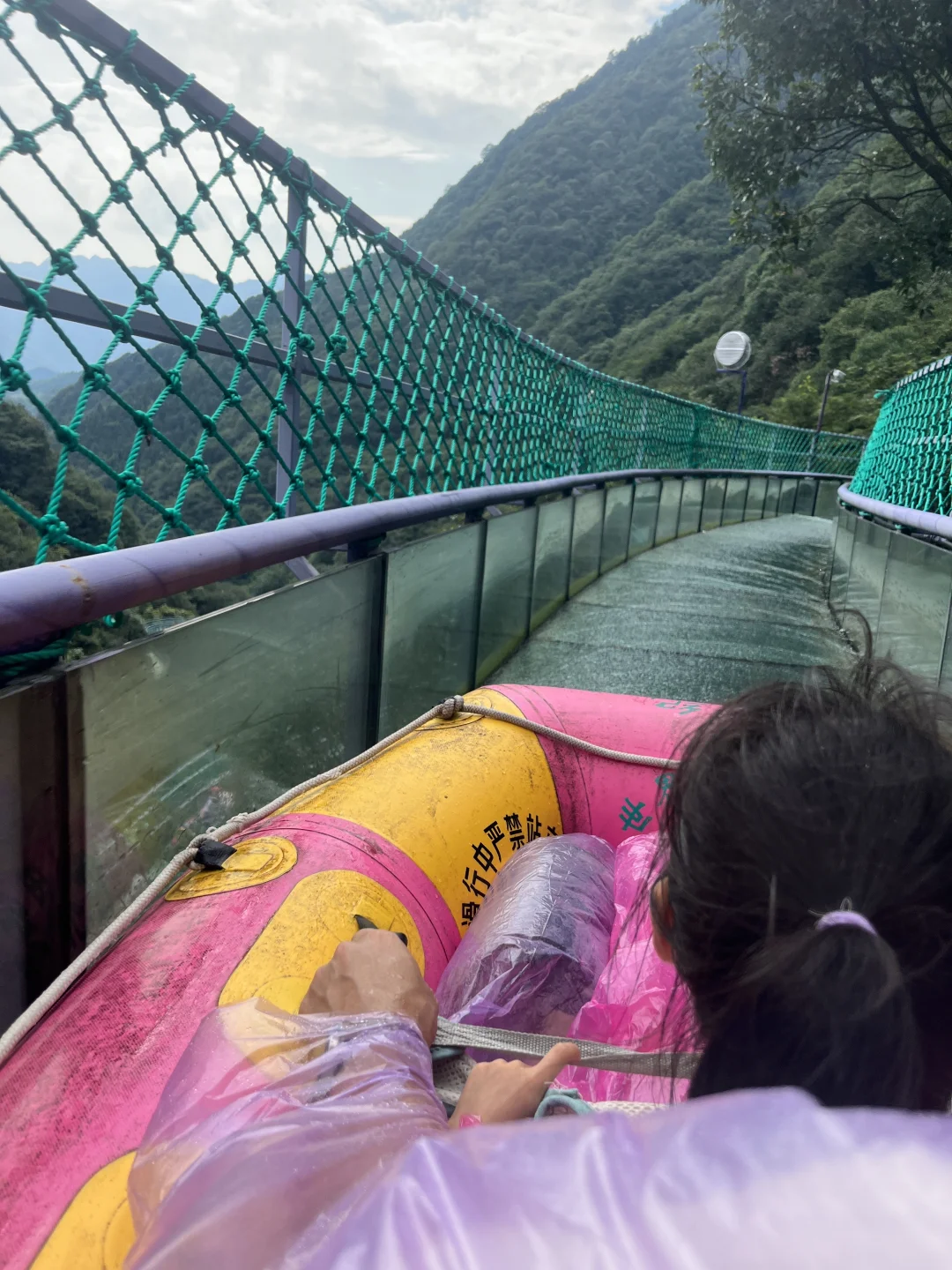 1️⃣紫龙峡漂流:玻璃滑道,小朋友坐在中间超安全,全程都在哇哇大叫,但一点都不会湿身!