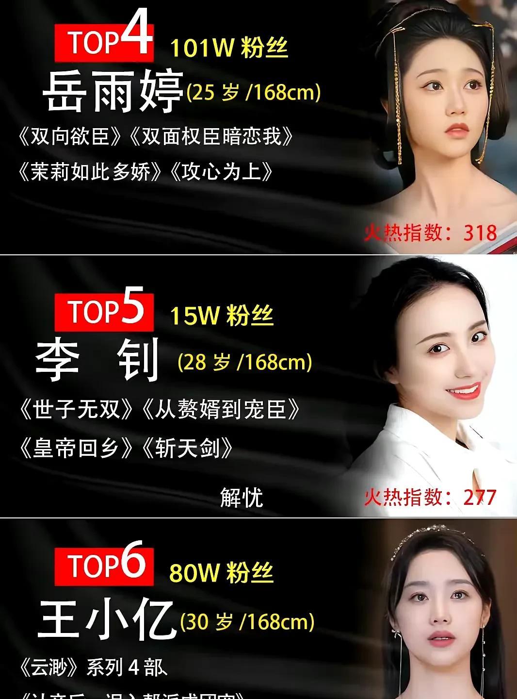 韩雨彤,岳雨婷,候呈玥。看过她们的短剧,有身材有长相有演技。其他的不知道。