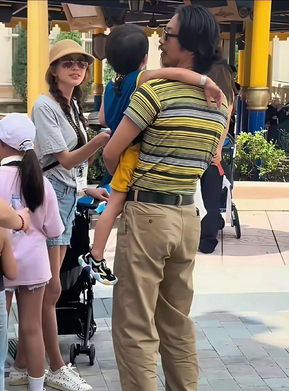 51岁的林志玲带娃出游的照片曝光,状态简直绝了! 她扎着双麻花辫,身穿灰色T恤搭
