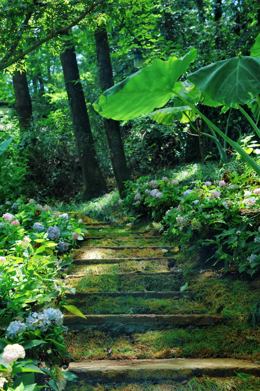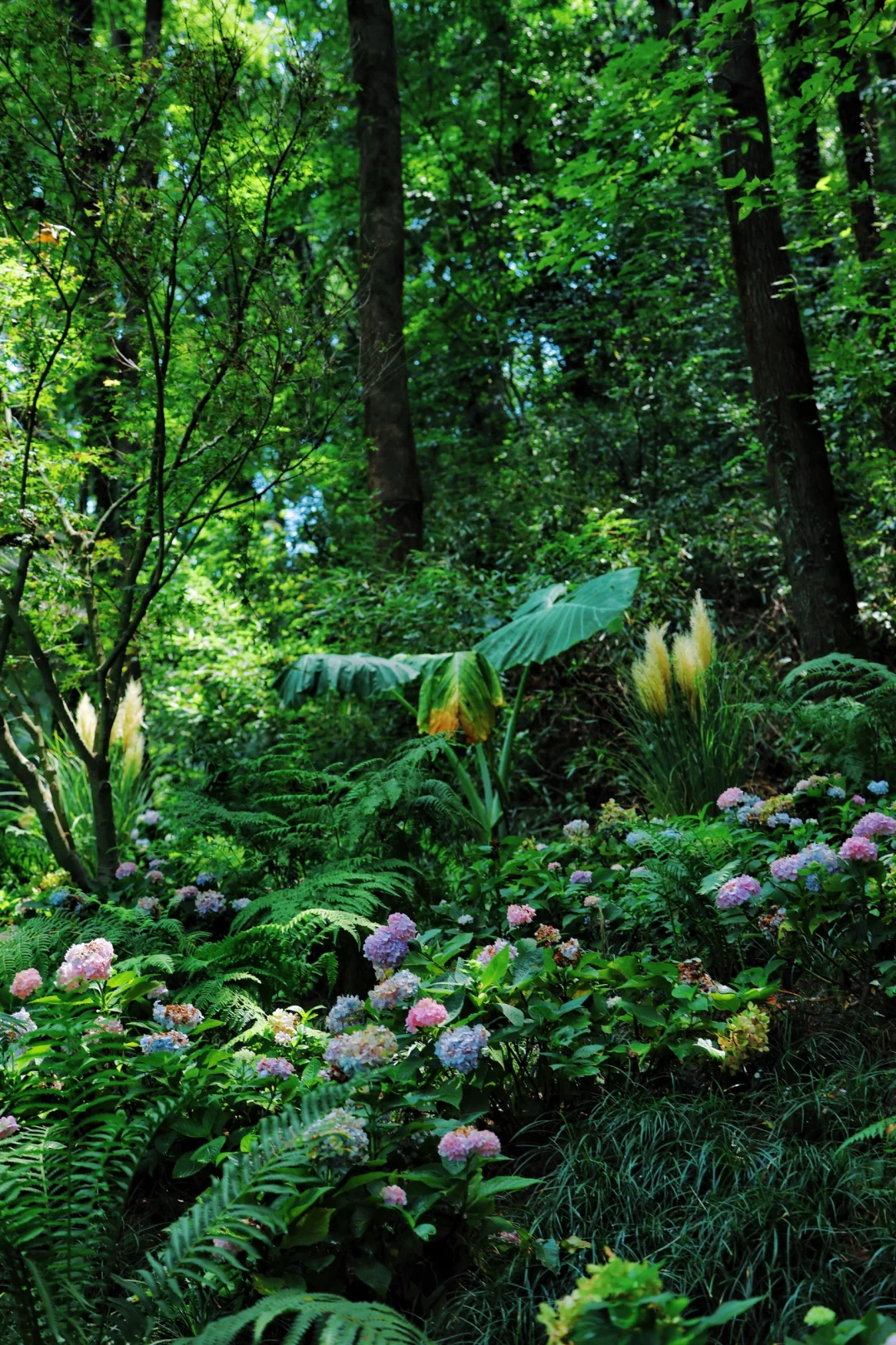 就在灵山幻境门口,真的美到犯规!一走进,仿佛置身童话世界。参天的绿树🌳 弥漫的雾气,还有好多绣球花,阳光透过树叶的缝隙洒下,形成一道道丁达尔光束,拍照超jue