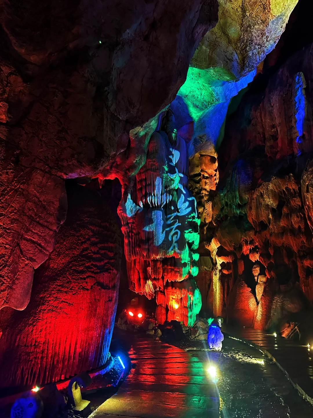 洞里的钟乳石在灯光的映照下,呈现出各种奇妙的造型,让人不禁感叹大自然的鬼斧神工!全程游玩大约需要1.5 - 2小时,记得穿防滑鞋,洞内地面有些湿滑