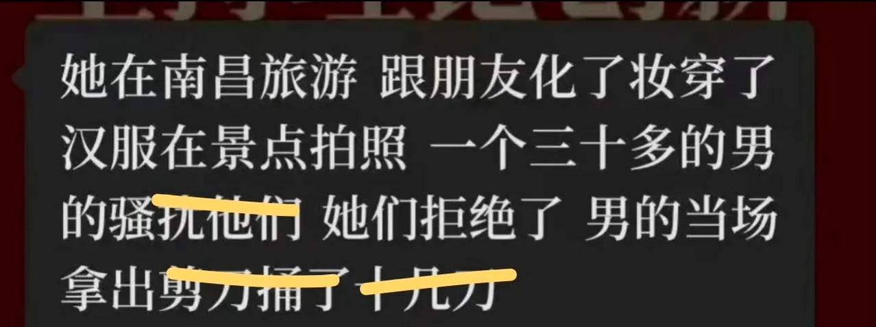 8月10日,南昌八大山人梅湖景区发生一起恶性案件,一名19岁女大学生遭一名23岁男子持剪刀捅刺十余刀,当场身亡。 据警方通报,嫌疑人有精神疾病诊疗史,目前已被刑拘。 受害者亲友透露,事发时女生正穿着汉服游玩,拒绝陌生男子搭讪后遭其疯狂袭击。 疑精神病不应成为“免死金牌”,呼吁严惩凶手。 精神病不该是犯罪的“护身符”! 如果凶手真因精神问题失控,那监护人和医疗体系是否尽到监管责任?