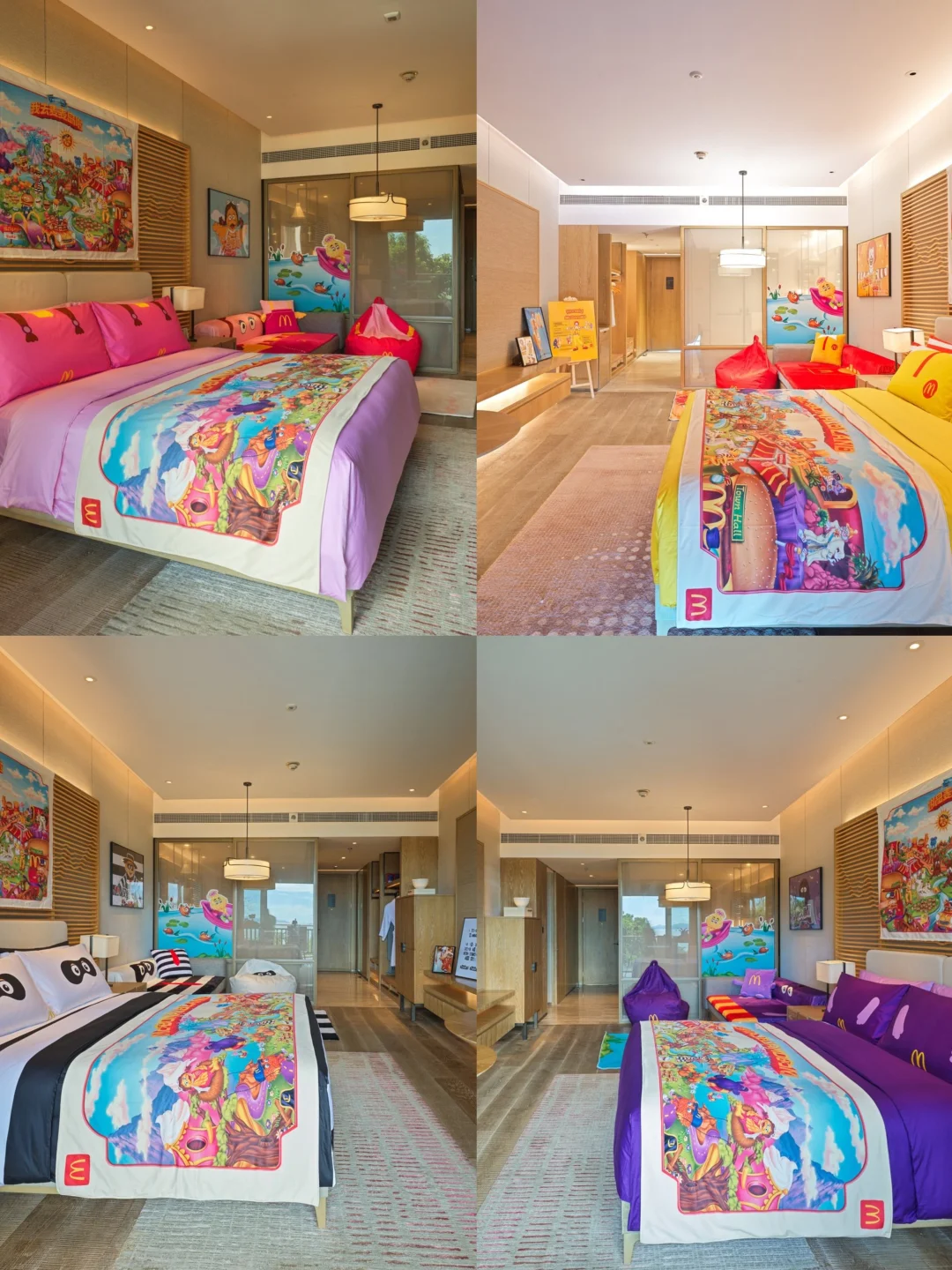 这次万豪旅享家联动 14 个城市指定的万豪旅享家旗下酒店,推出了麦当劳经典人物主题客房!