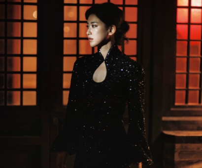 朱珠今日盛典造型释出,大美女这张极具东方美的脸就该穿旗袍!朱珠把这条黑色亮片旗袍