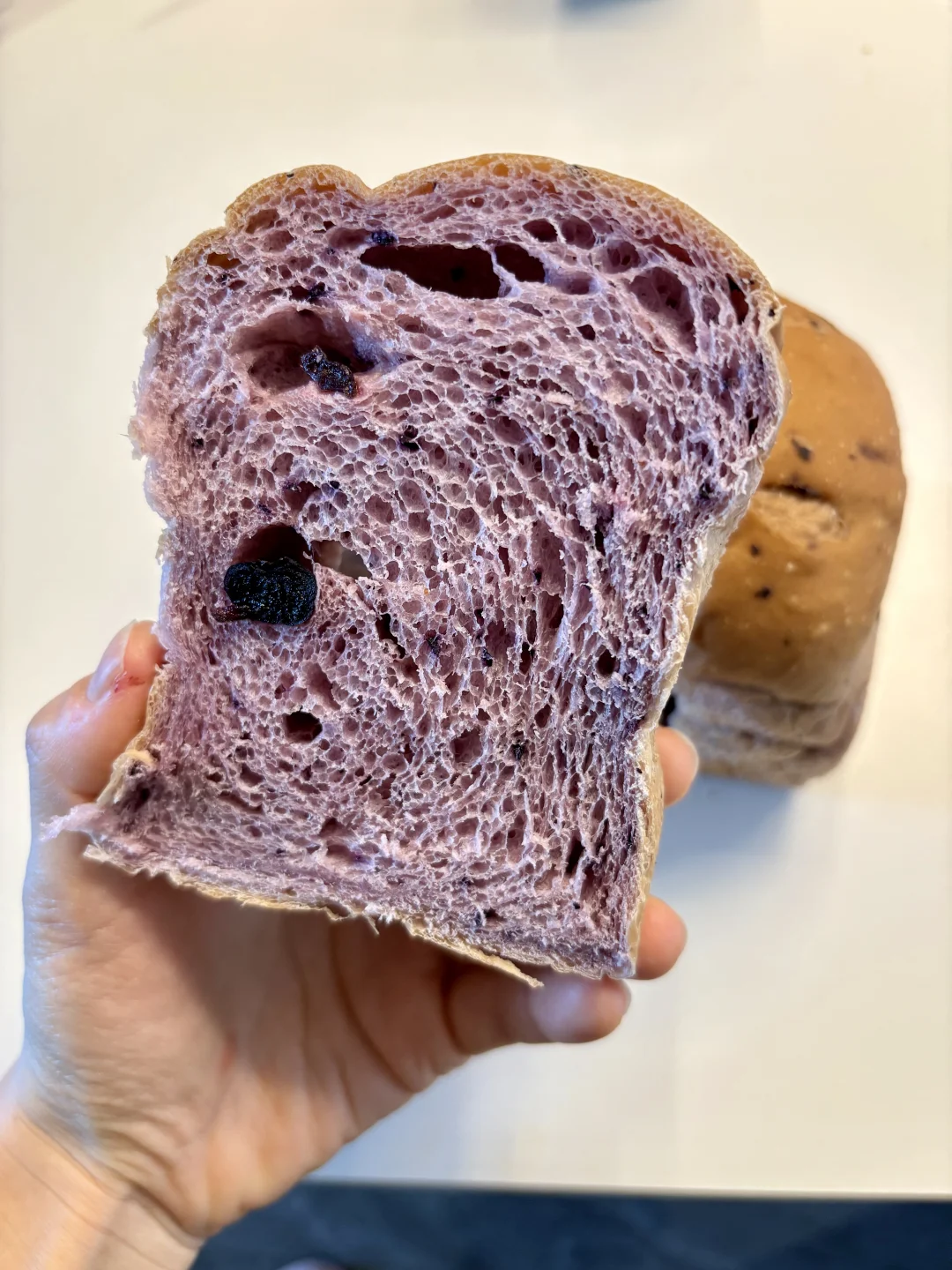 我的甜梨到了,吃了辣松猪肉铺吐司和蓝莓吐司,都不错!