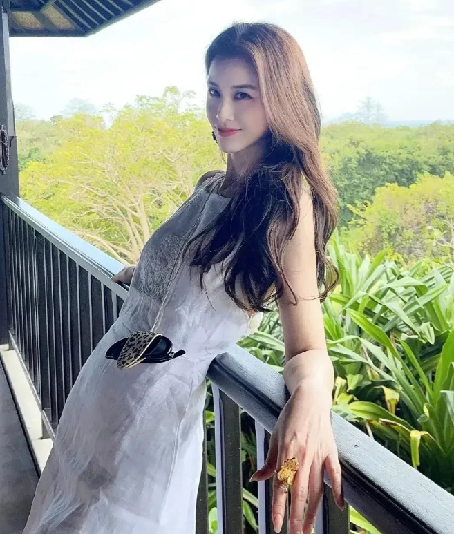 她的身形依旧纤瘦,完全看不出是两个孩子的妈妈。尤其是她穿着白色连衣裙的造型,长发披肩,笑容灿烂,瞬间让人想起她刚出道时的模样。她的皮肤依旧透亮,手臂线条优美,散发着满满的少女感。